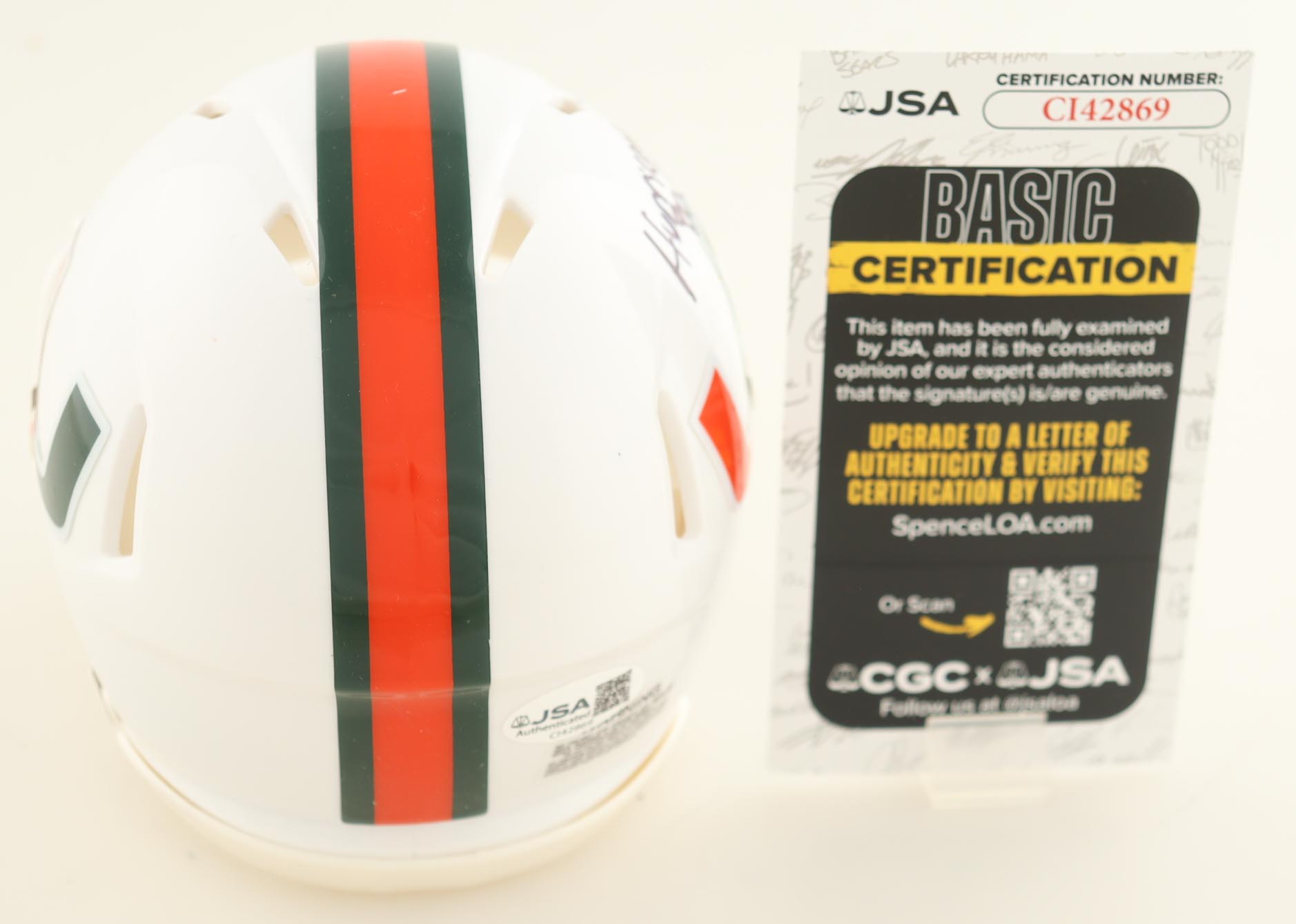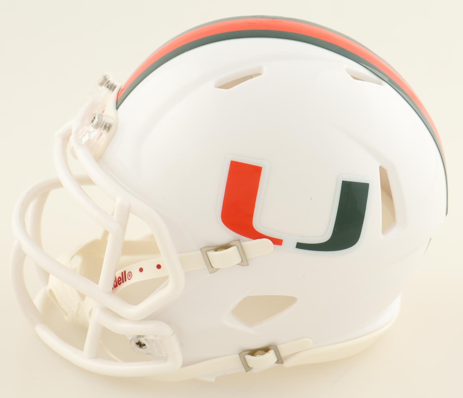 Riddell Miami Hurricanes speed mini helmet has been hand-signed and inscribed by Rueben Bain Jr..