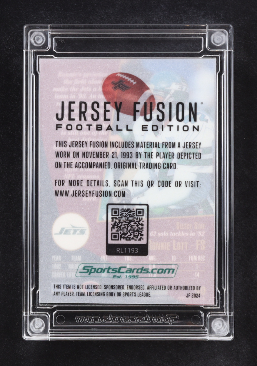 Ronnie Lott 2024 Jersey Fusion Game Used Swatch #RL1193