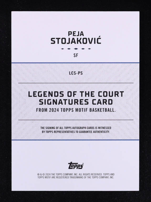 Peja Stojakovic 2023-24 Topps Motif Legends of the Court Signatures Cadmium Orange #LCSPS #02/25