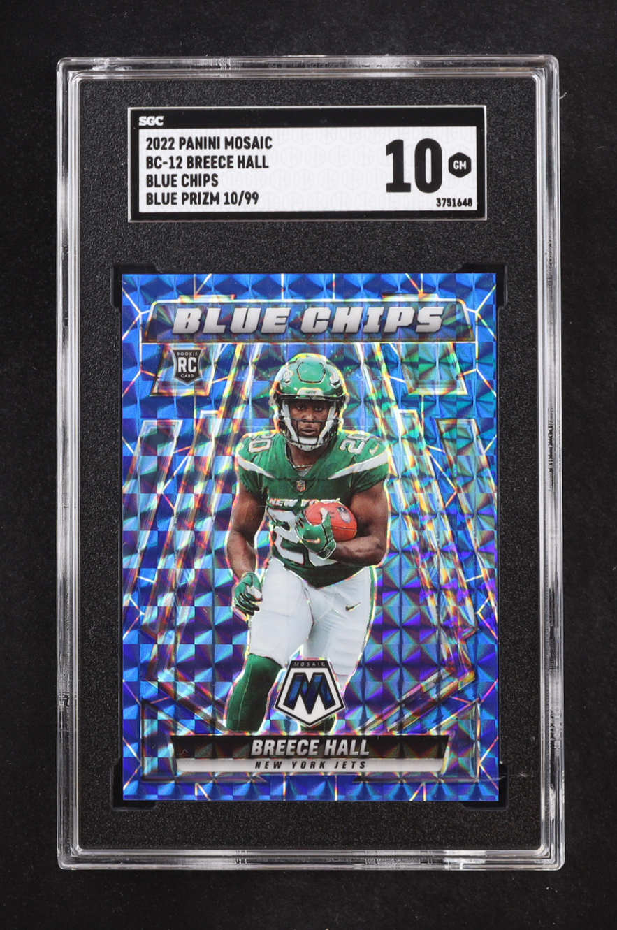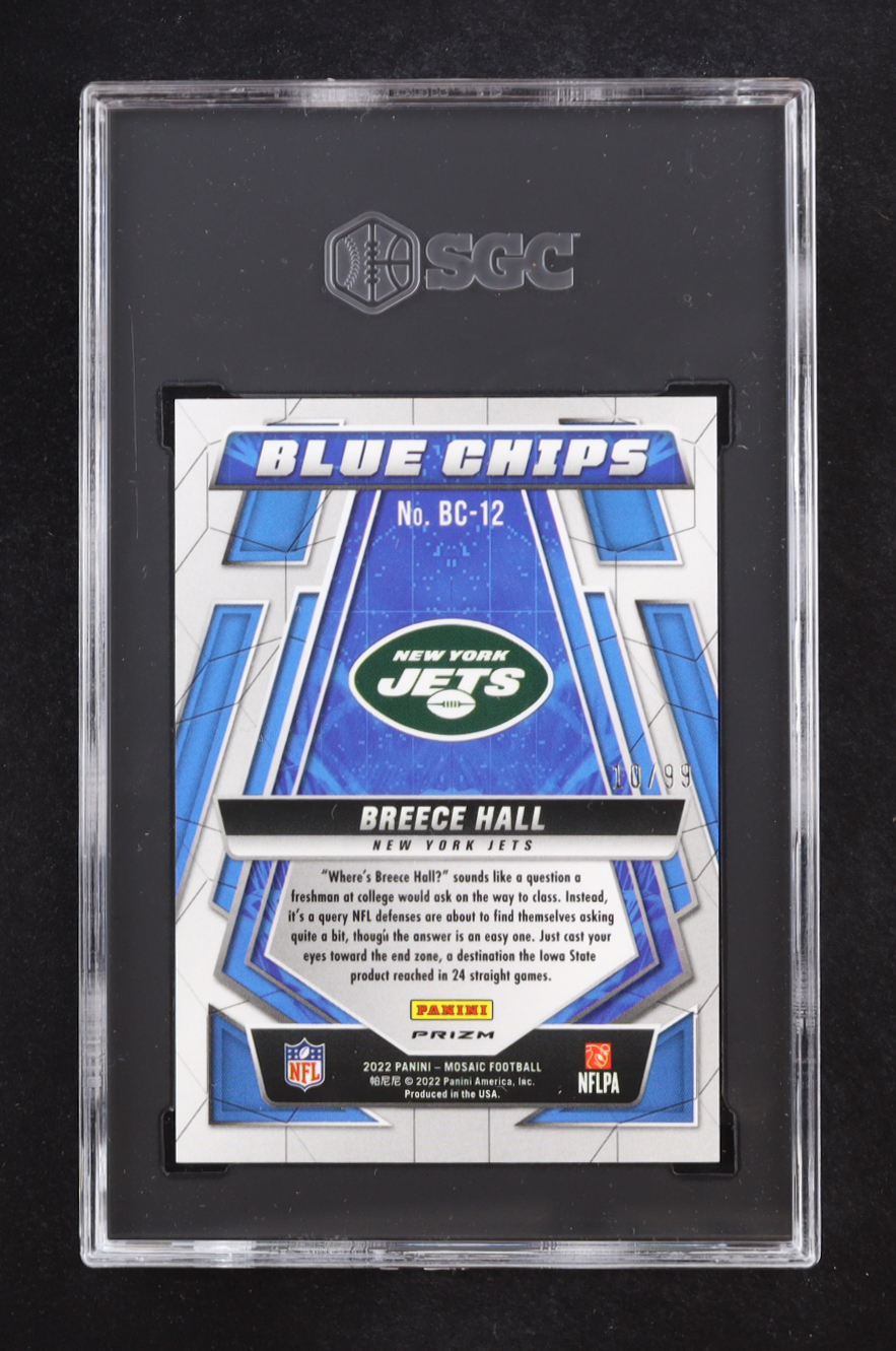 Breece Hall 2022 Panini Mosaic Blue Chips Mosaic Blue #12 RC #10/99 (SGC 10)