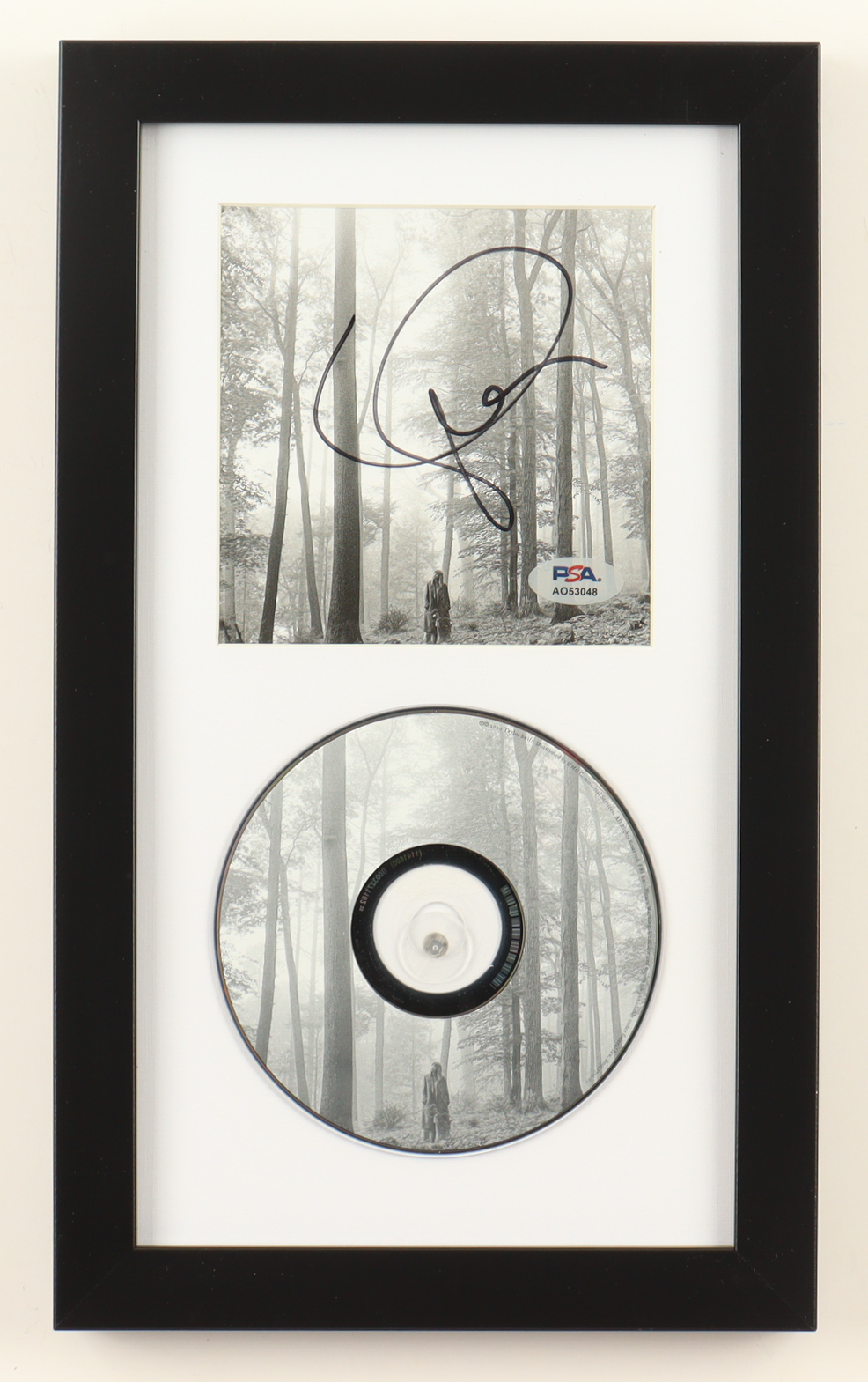 Custom frame measures approximately 8" x 13.5" in size. Features a "Folklore" CD insert that has been hand-signed by Taylor Swift and includes the disc as shown. Please note, there is scuffing on the frame.