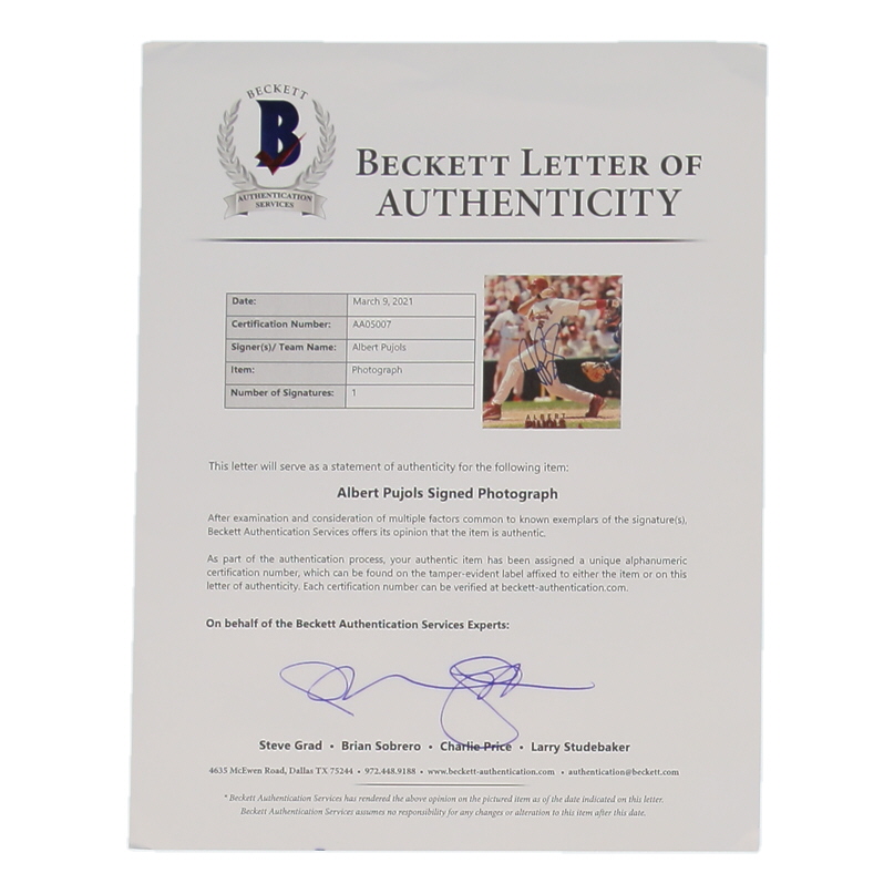 Photo measures 8" x 10" in size and has been hand-signed by Albert Pujols (St. Louis Cardinals).