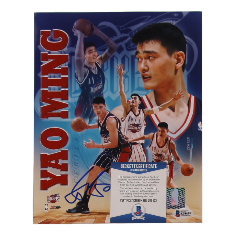 Photo measures 8" x 10" in size and has been hand-signed by Yao Ming (Houston Rockets, HOF)