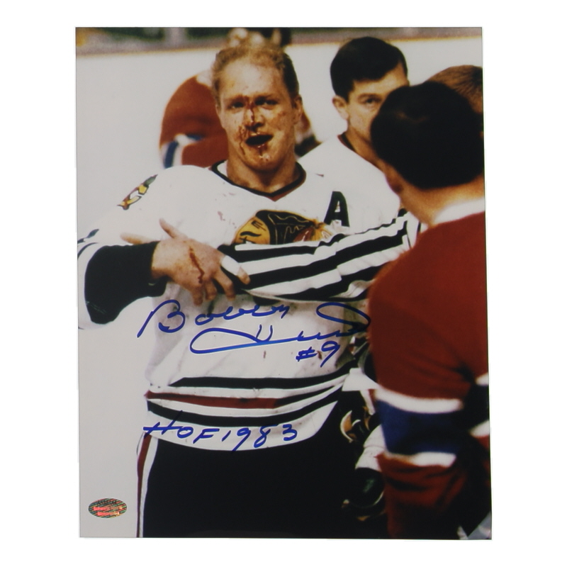 Photo measures 8" x 10" in size and has been hand-signed by Bobby Hull (Chicago Blackhawks, HOF)