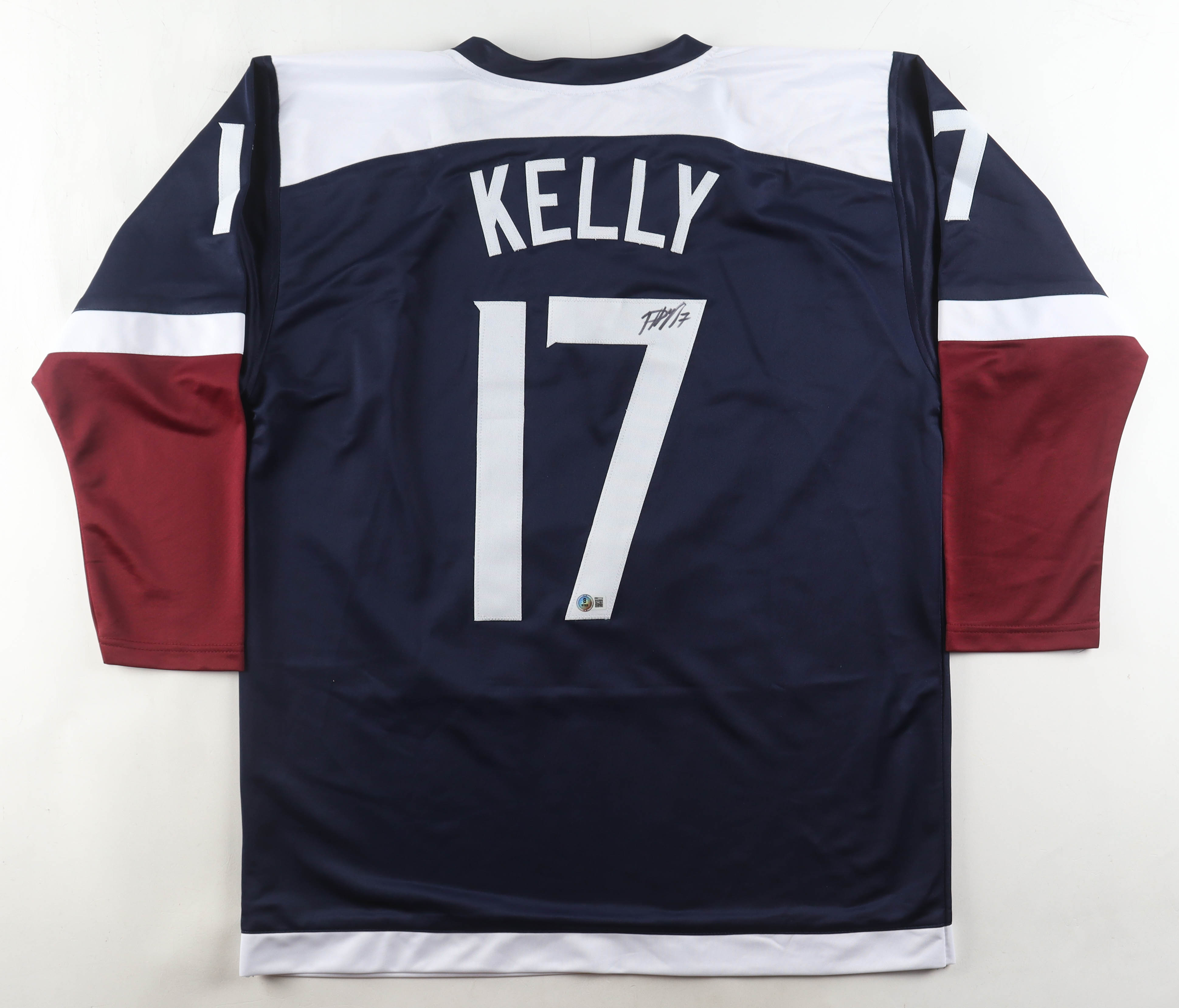 Custom jersey with everything sewn on, size XL. Hand-signed by Parker Kelly.