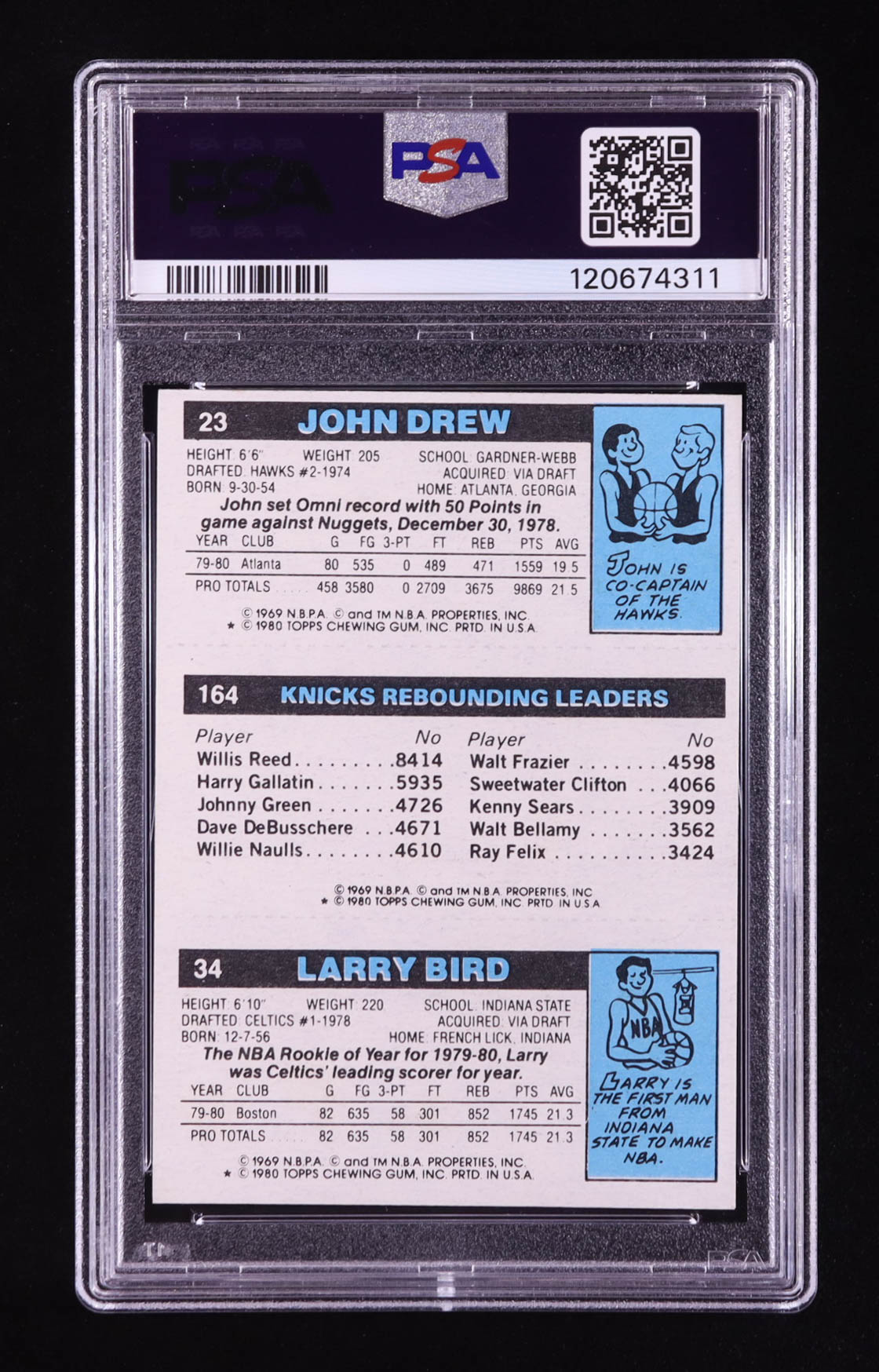 Larry Bird #34 / Bill Cartwright TL #164 / John Drew #23 1980-81 Topps #94 (PSA 6)
