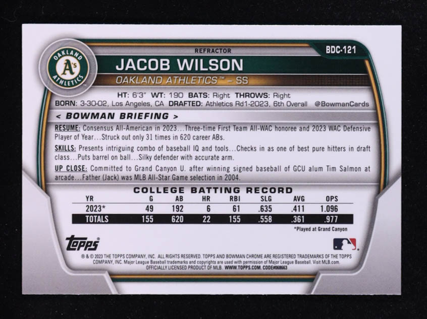 Jacob Wilson 2023 Bowman Chrome Draft Refractors #BDC121 RC
