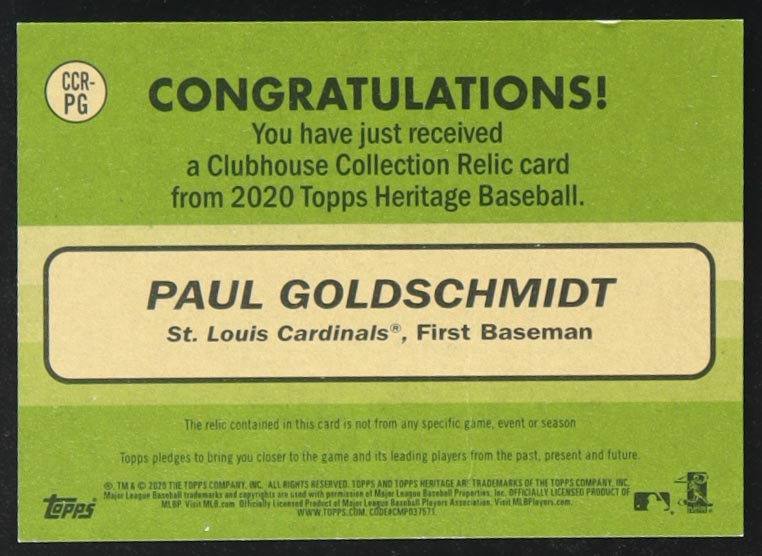 Paul Goldschmidt 2020 Topps Heritage Clubhouse Collection Relics #CCRPG