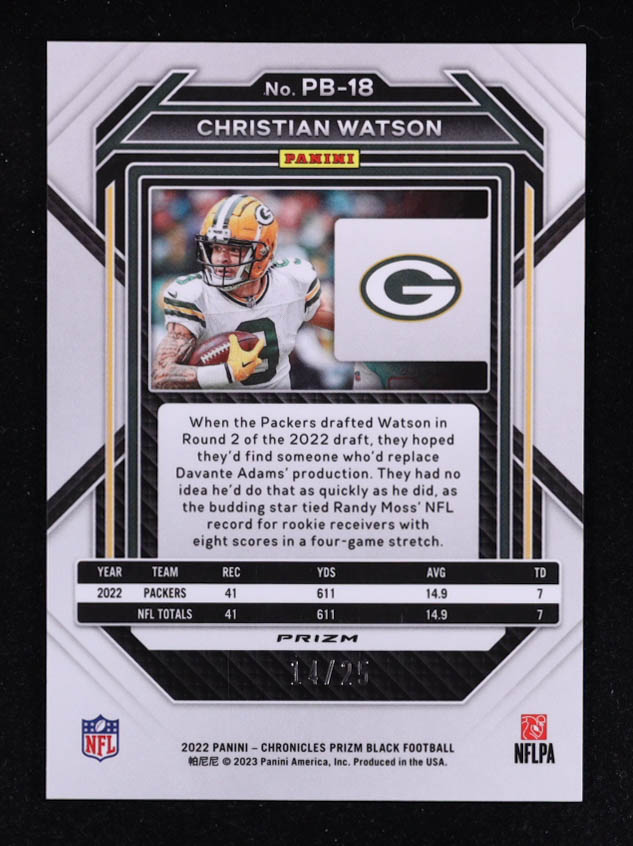 Christian Watson 2022 Panini Chronicles Prizm Black Blue #18 #14/25 RC