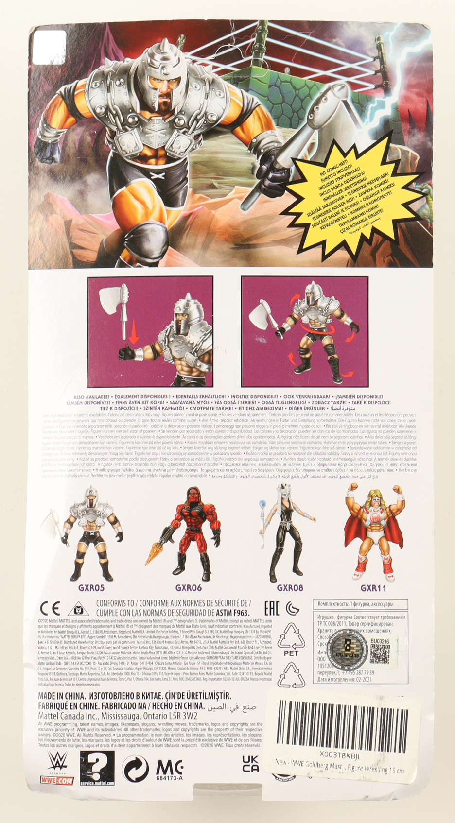 2020 "Masters of the W" Action Figure. Hand-signed on the box by Bill Goldberg (HOF). Please note that the original packaging shows signs of damage.
