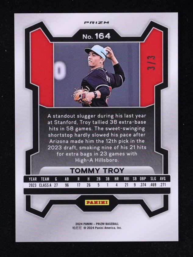 Tommy Troy 2024 Panini Prizm Prizms Black Gold Shimmer FOTL #164 #3/3 RC