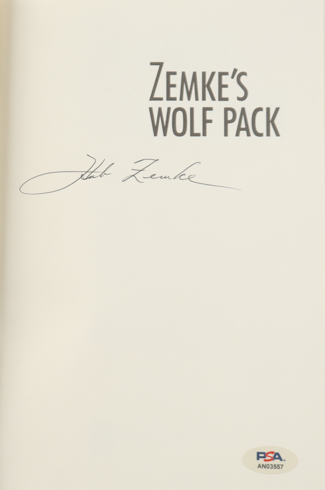 Presented is a hardbound edition of Zemke’s Wolf Pack: The Story of Hub Zemke and the 56th Fighter Group in the Skies of Europe, hand signed in ballpoint pen by Colonel Hubert “Hub” Zemke (1914–1994). The autograph bears an official PSA/DNA authentication sticker affixed to the book, ensuring both verification and collector confidence.