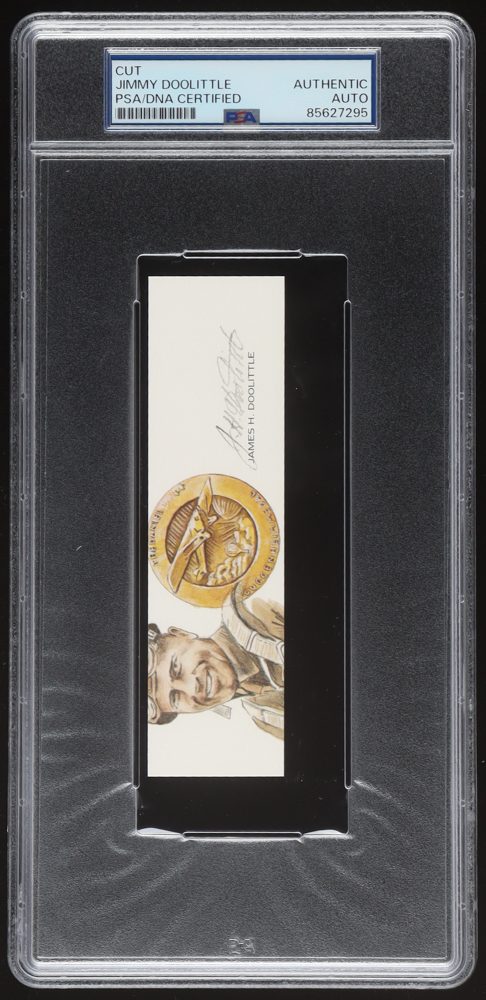 Presented is a hand-signed cut signature of General James H. “Jimmy” Doolittle (1896–1993), executed in pencil. This signature originates from a limited edition Gathering of Eagles lithograph and has been authenticated and encapsulated by PSA/DNA, ensuring both verification and long-term preservation.