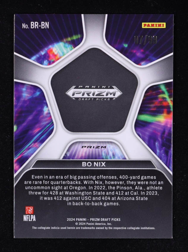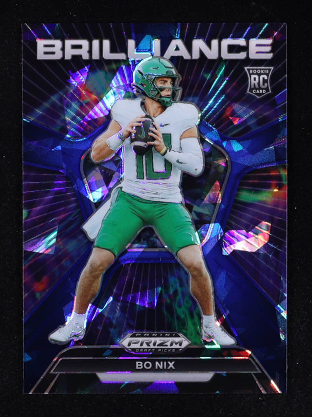 Bo Nix 2024 Panini Prizm Draft Picks Brilliance Blue Ice #17 #07/99 RC