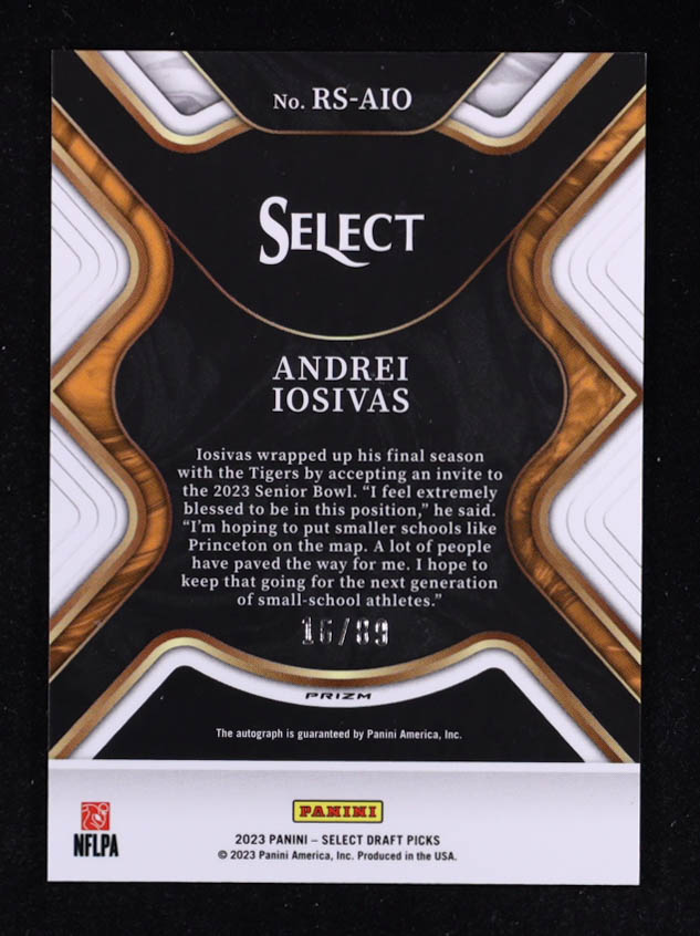 Andrei Iosivas 2023 Select Draft Picks Rookie Signatures Prizms Purple Lazer #100 #16/89 RC