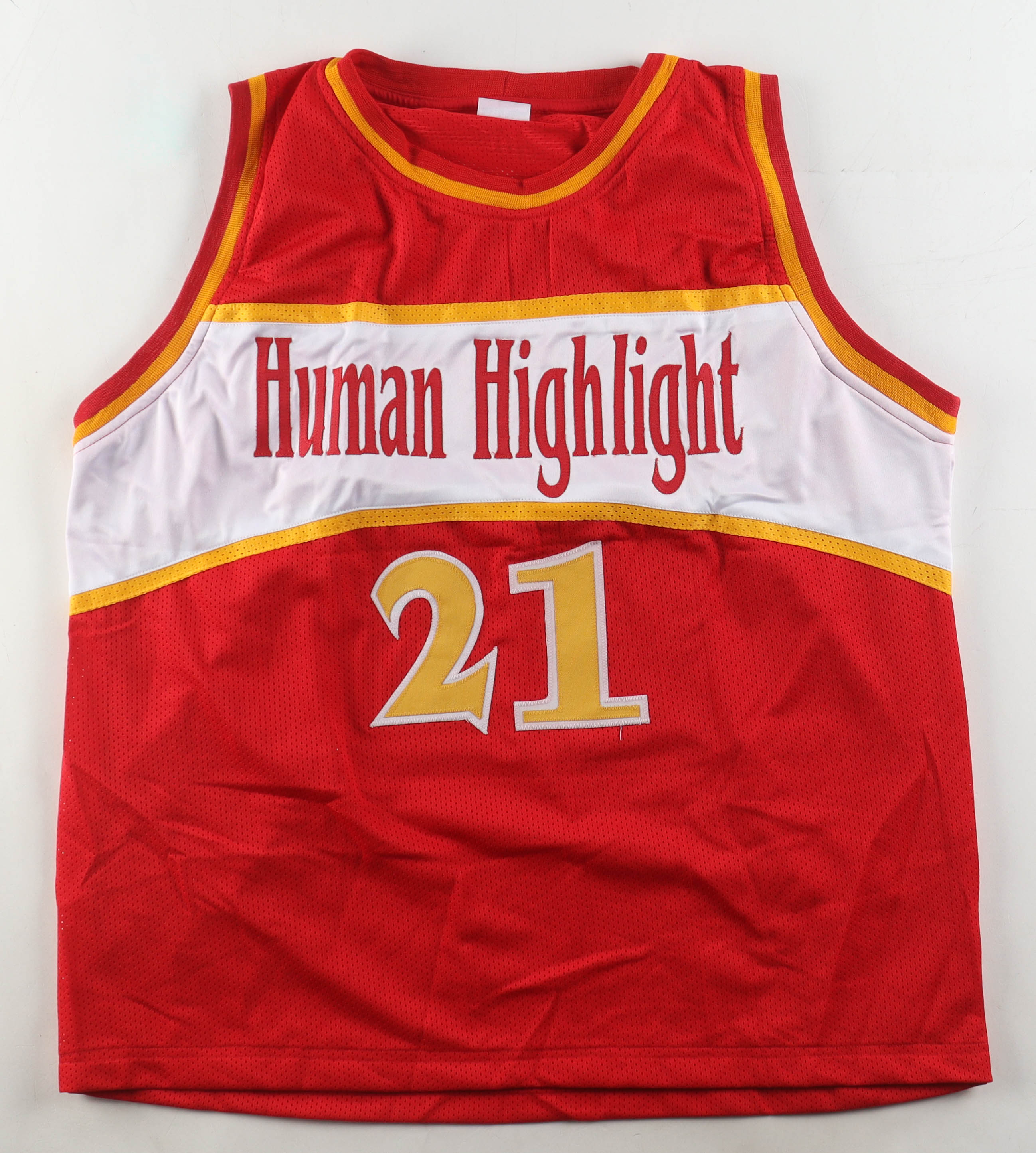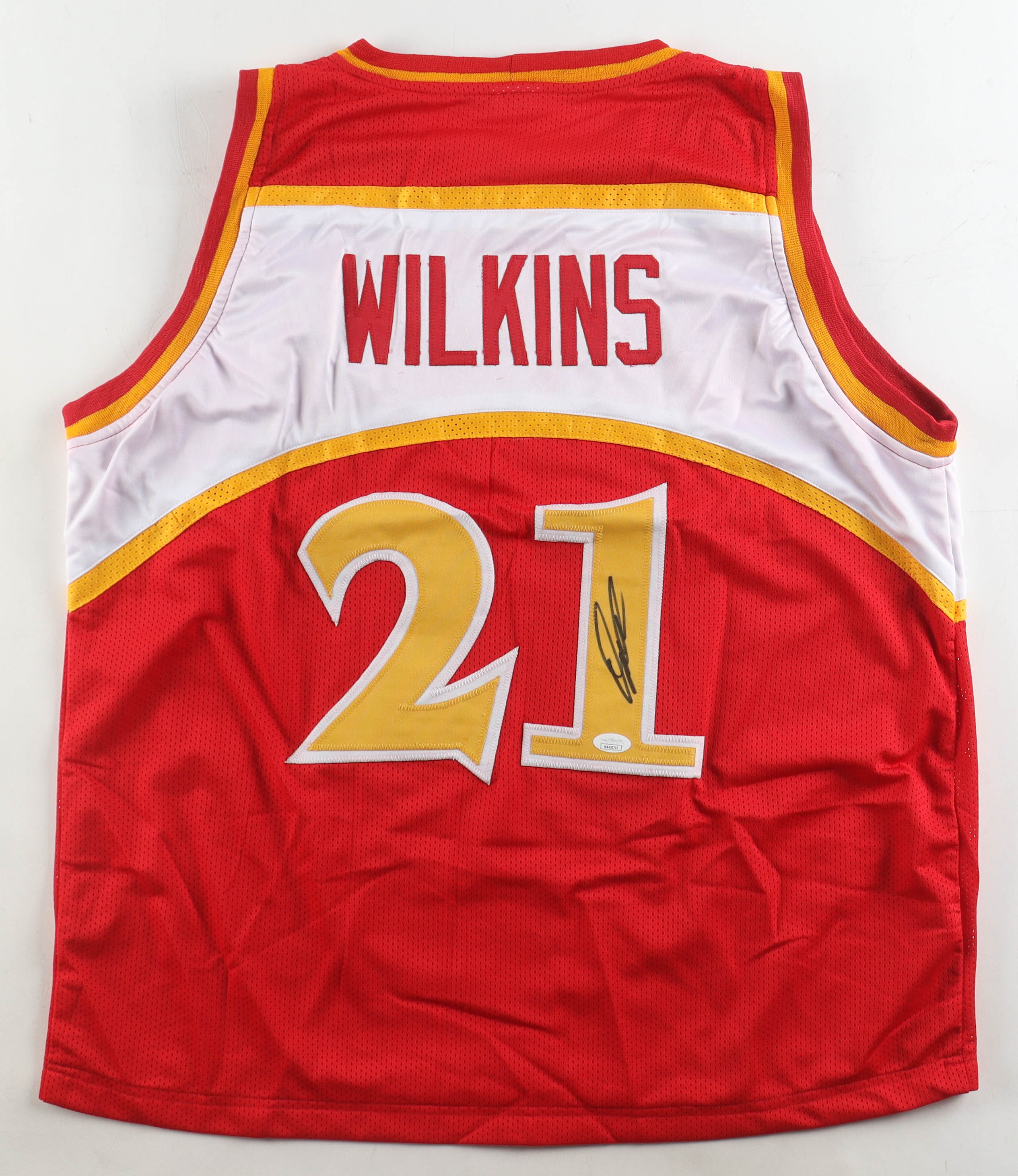 Custom jersey with everything sewn on, size XL. Hand-signed by Dominique Wilkins (HOF).