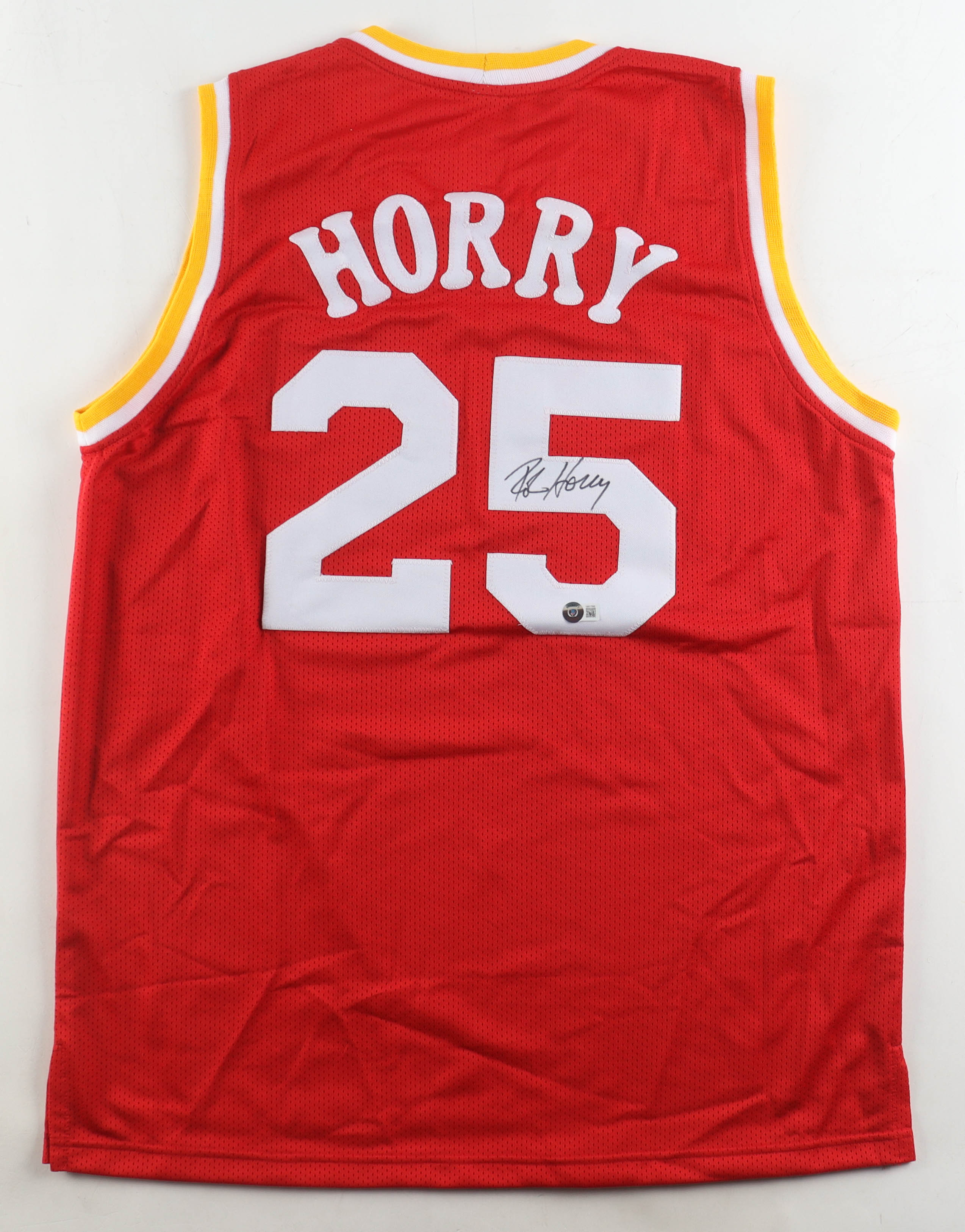 Custom jersey with everything sewn on, size XL. Hand-signed by Robert Horry.