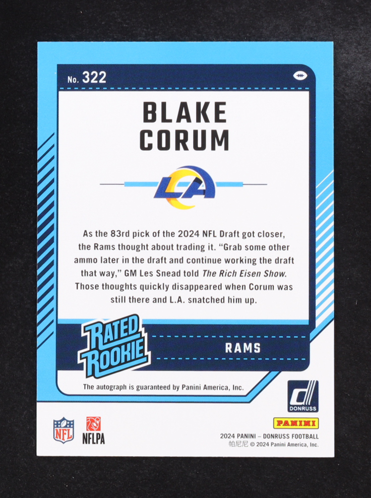 Blake Corum 2024 Donruss Rated Rookies Autographs #322 #170/199 RC