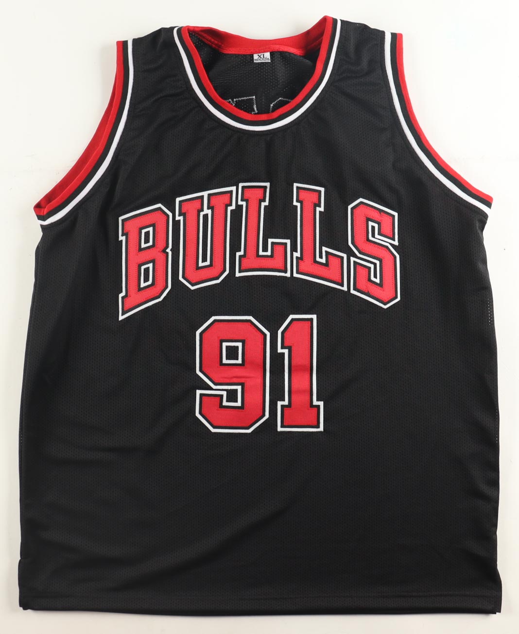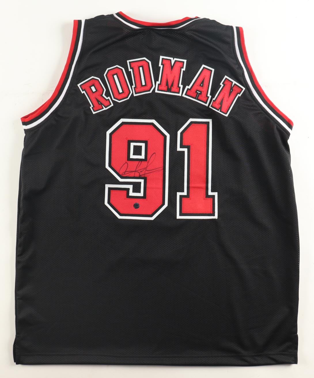 Custom jersey with everything sewn on, size XL. Has been hand-signed by Dennis Rodman (HOF).