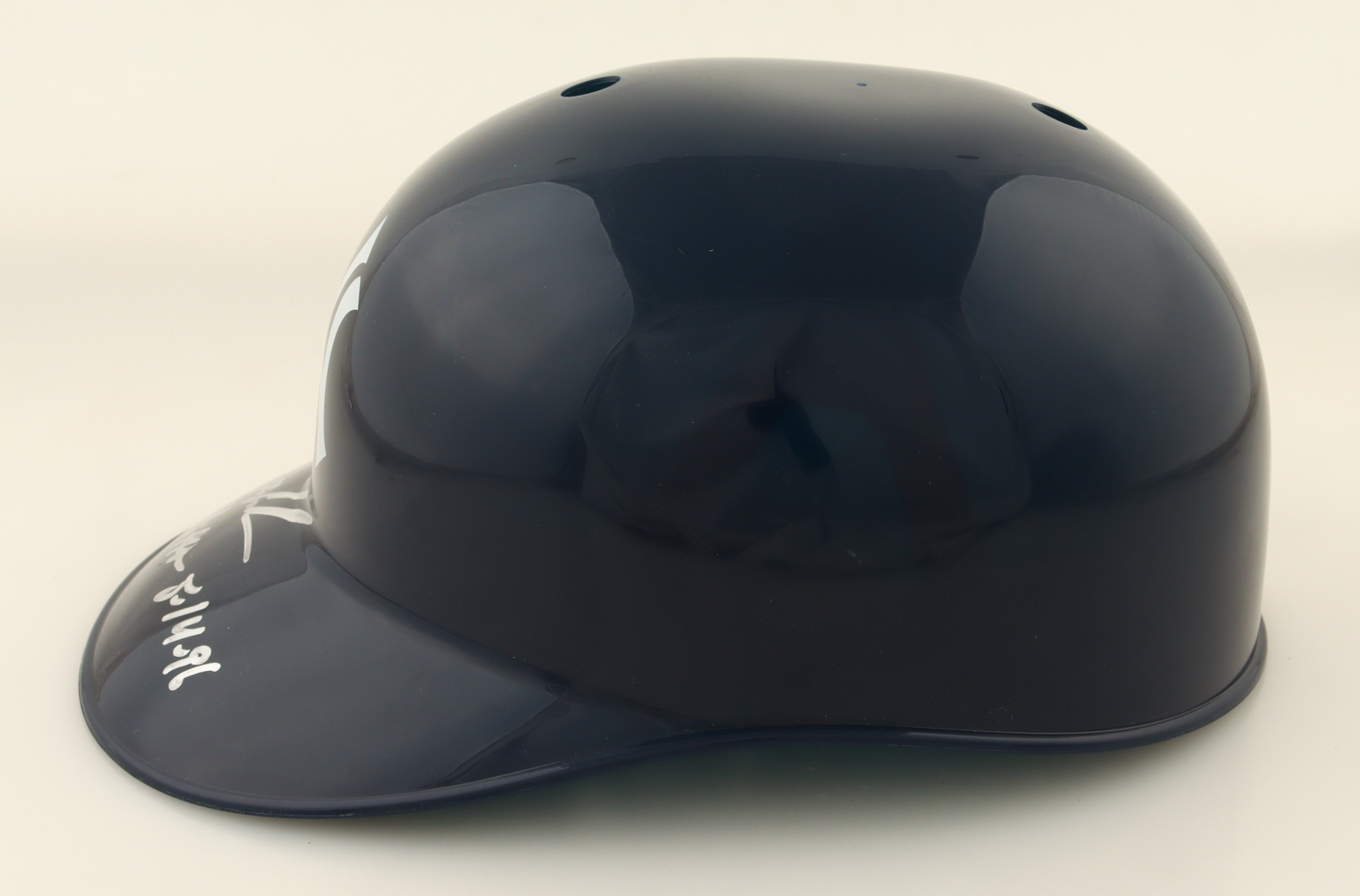 New York Yankees full-size plastic souvenir replica batting helmet. Hand-signed and inscribed by Dwight Gooden.