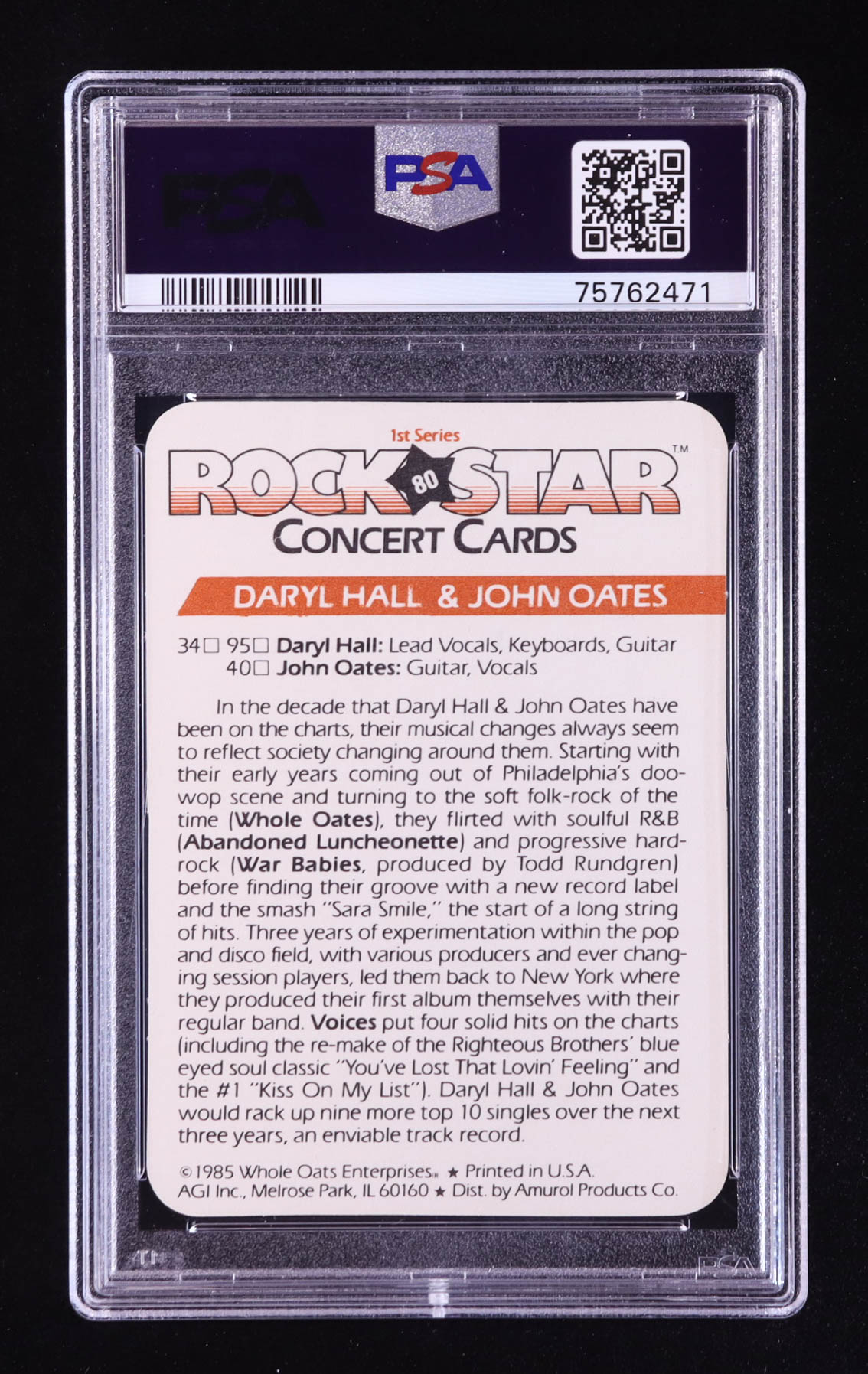 Daryl Hall and John Oates 1985 Amurol Rock Star Concert #80 (PSA 8)