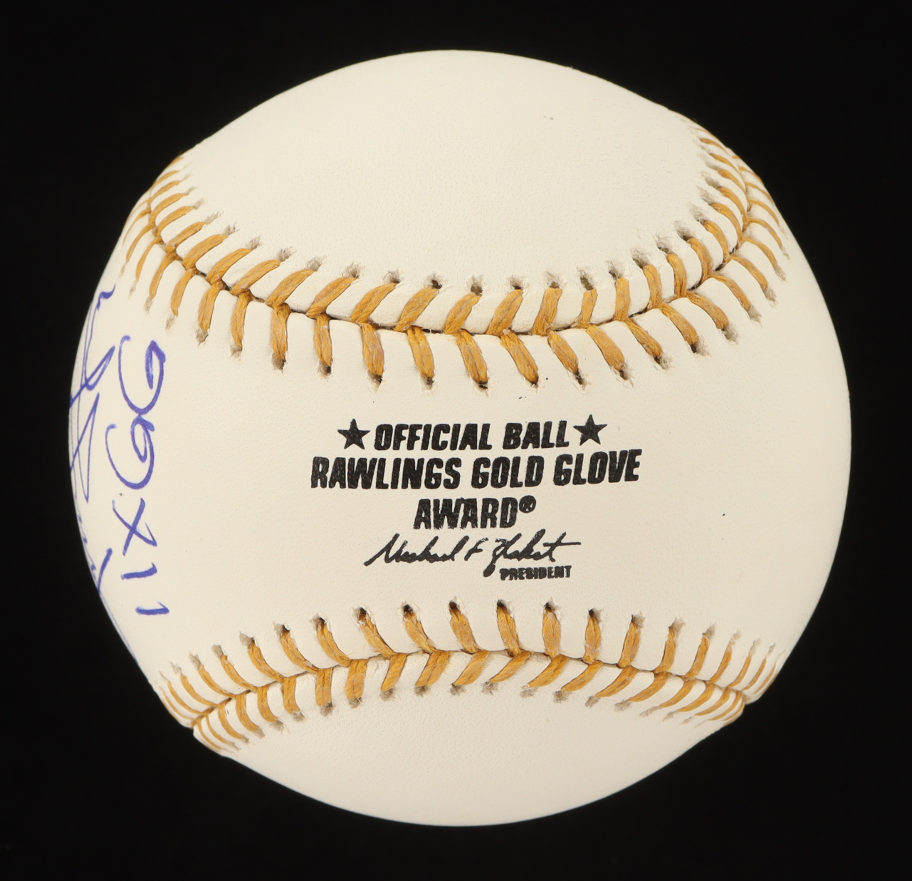Omar Vizquel Signed Gold Glove Award Logo Baseball Inscribed "11x GG" (Beckett)
