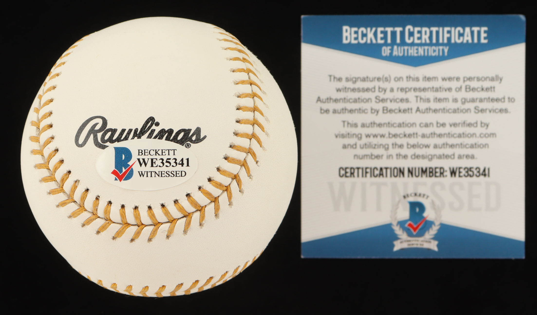 The autograph includes an official Beckett Authentication Services serially-numbered hologram and matching COA for authenticity purposes. The signing of this item was witnessed by Beckett.