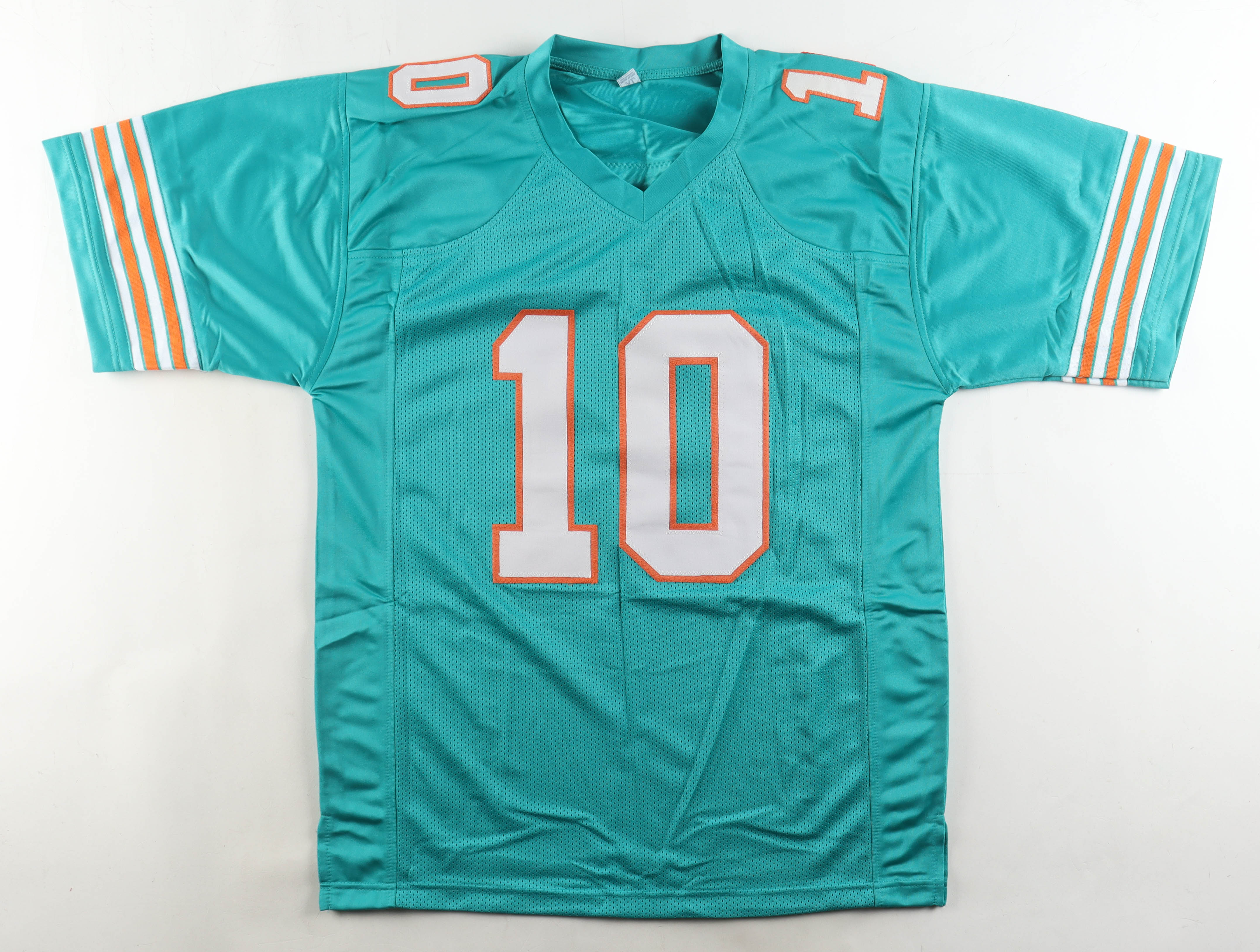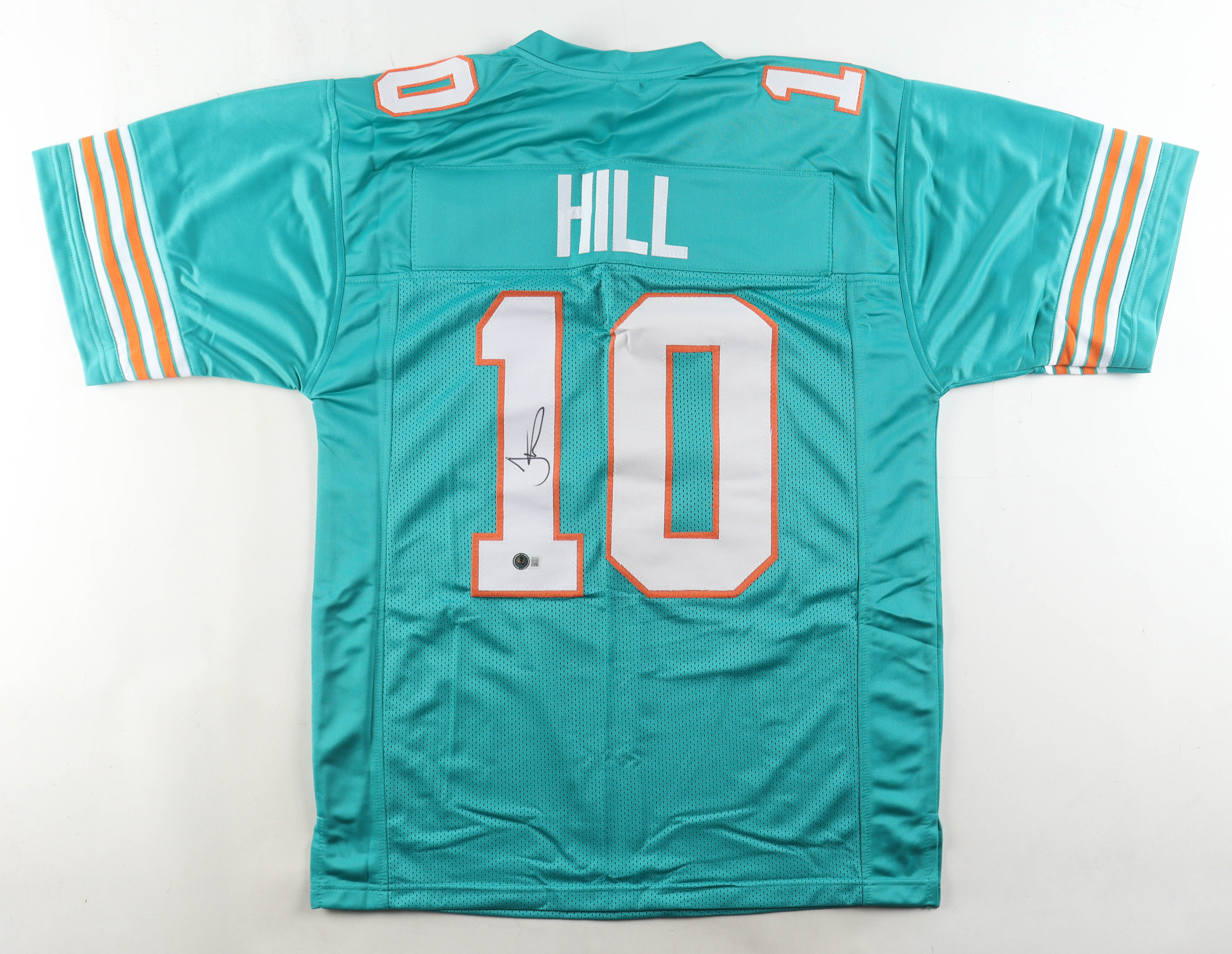 Custom jersey with everything sewn on, size XL. Hand-signed by Tyreek Hill (Miami Dolphins).