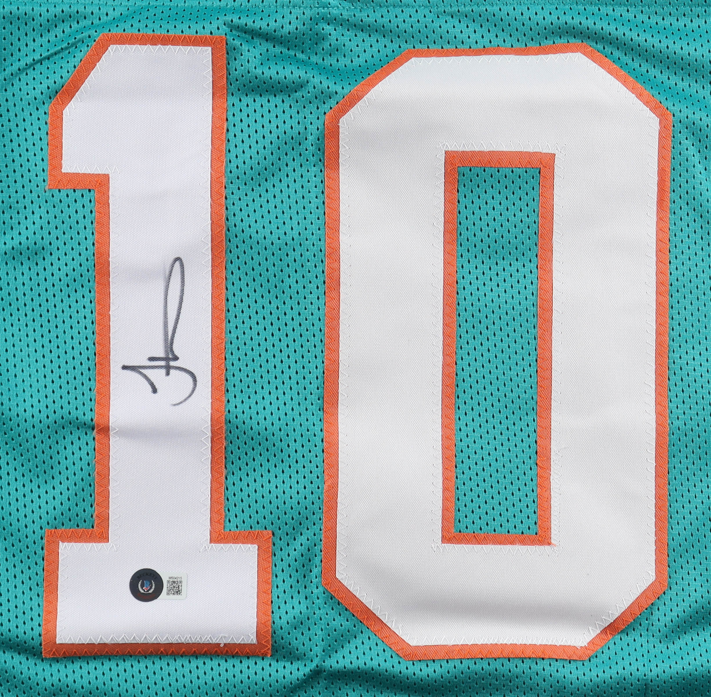 Custom jersey with everything sewn on, size XL. Hand-signed by Tyreek Hill (Miami Dolphins).