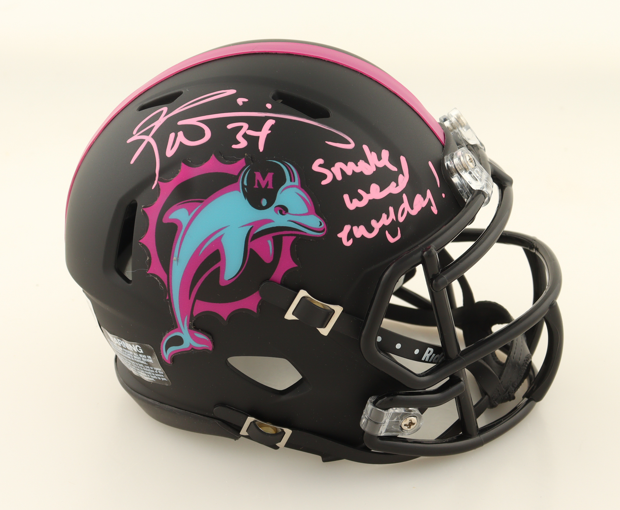 Ricky Williams Signed Dolphins Miami Vice Alternate Speed Mini Helmet Inscribed "Smoke weed every day" (Beckett)
