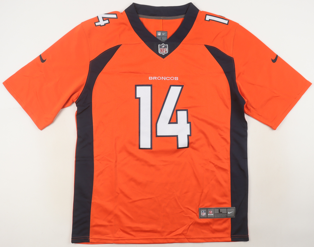 Nike jersey with everything sewn on, size L. Hand-signed by Courtland Sutton.