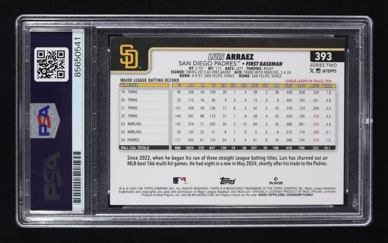 Luis Arraez Signed 2025 Topps #393 (PSA | Autograph Graded 8)