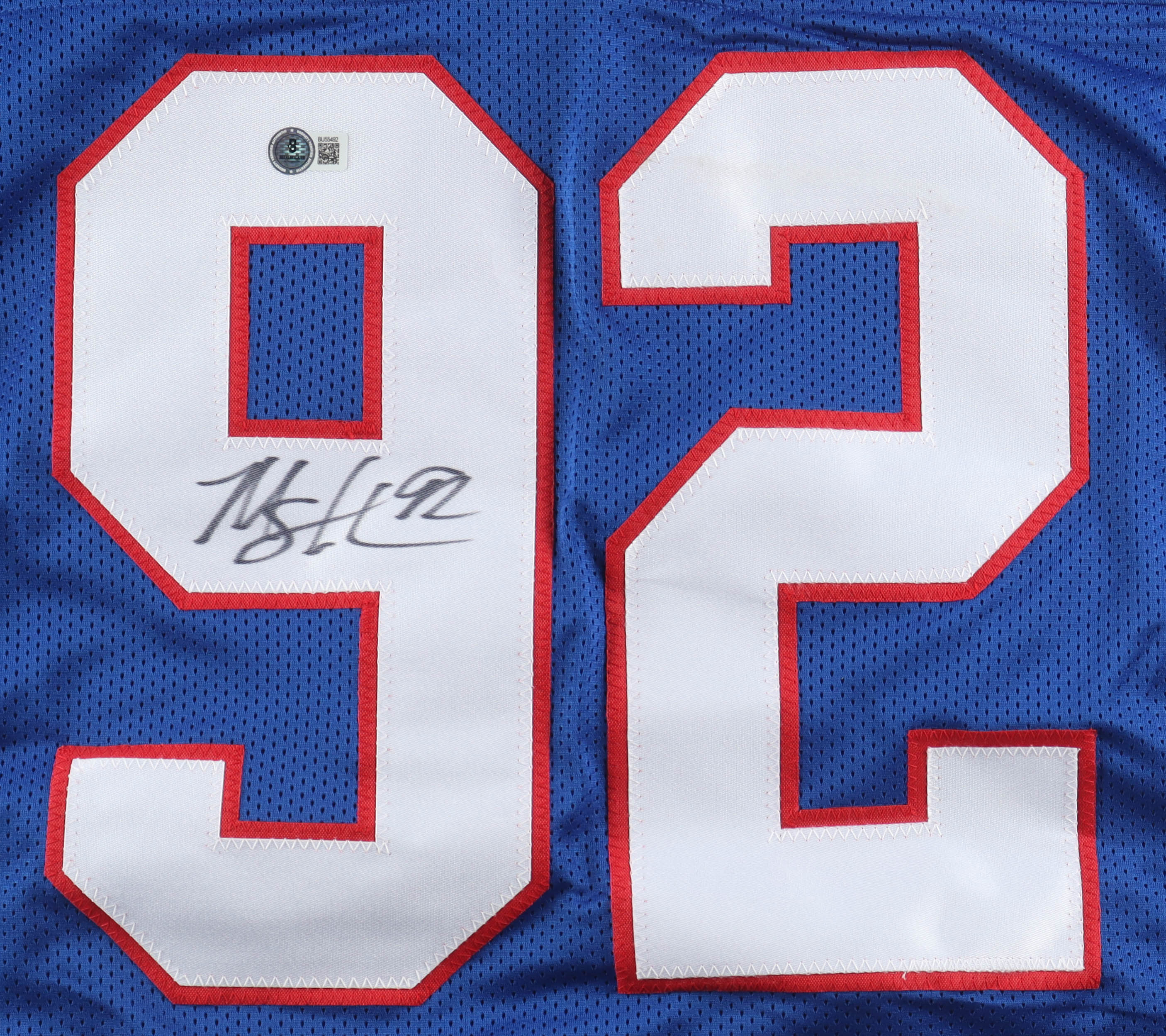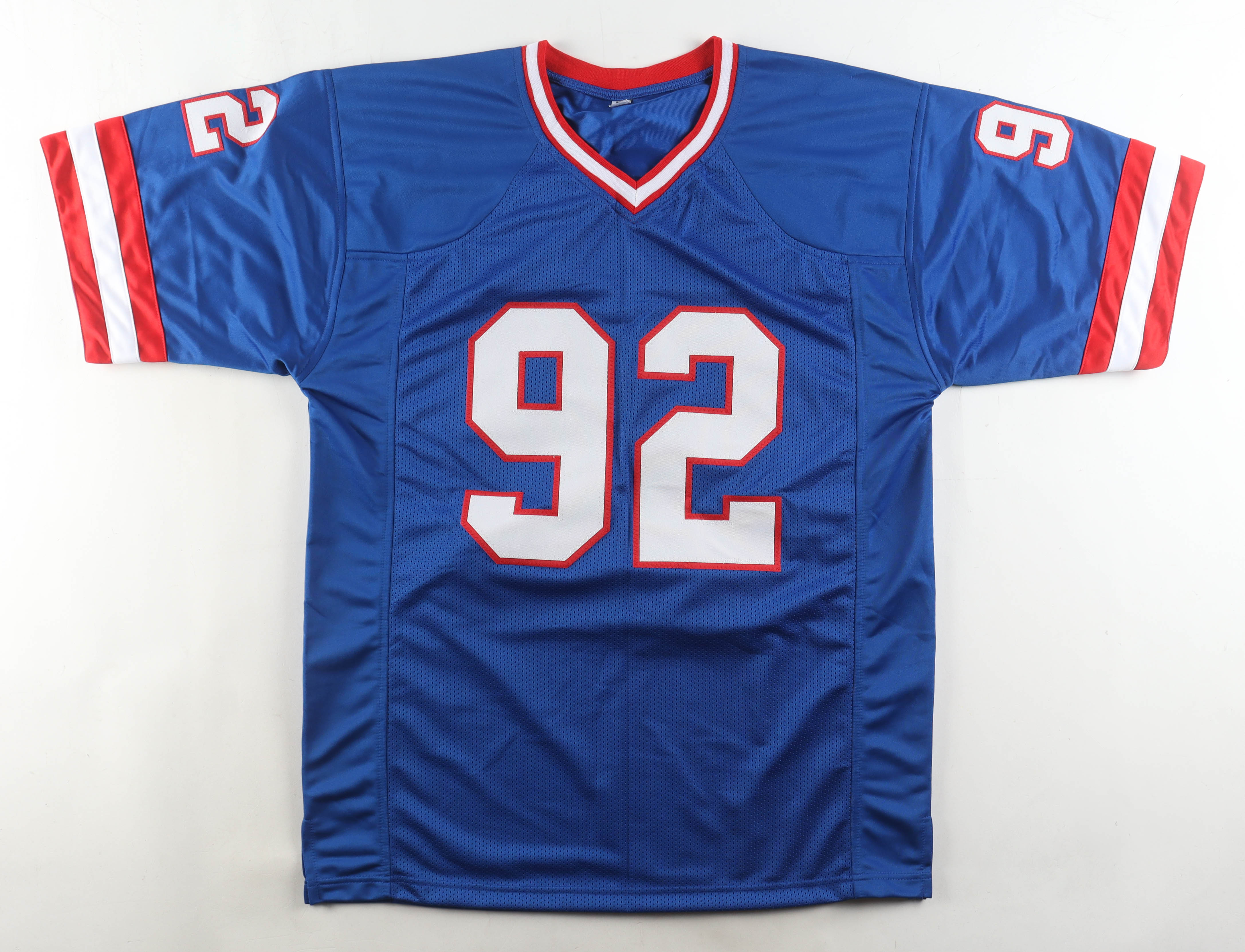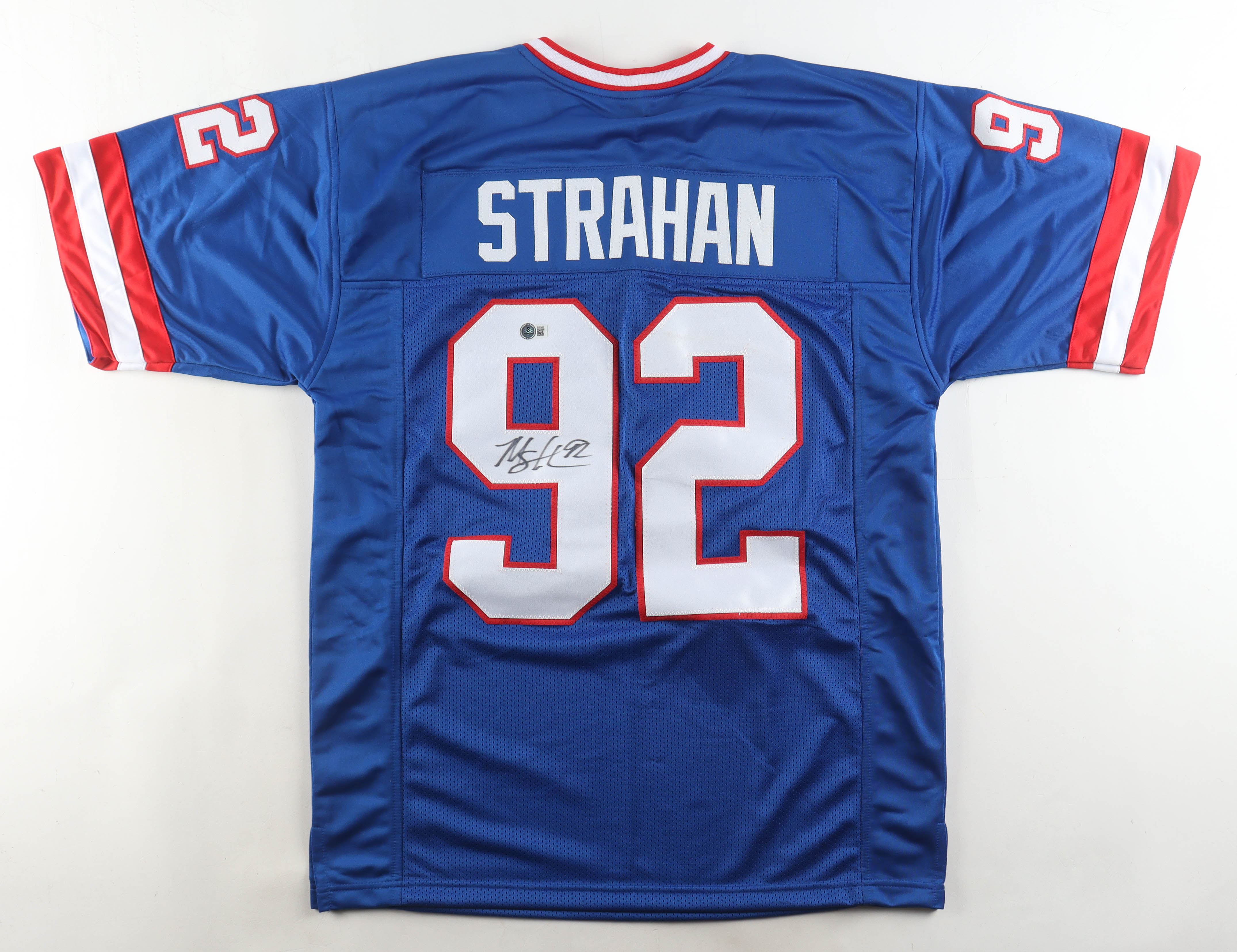 Custom jersey with everything sewn on, size XL. Hand-signed by Michael Strahan (HOF). Please note, there is staining on the reverse number. See photos regarding the condition of the item.