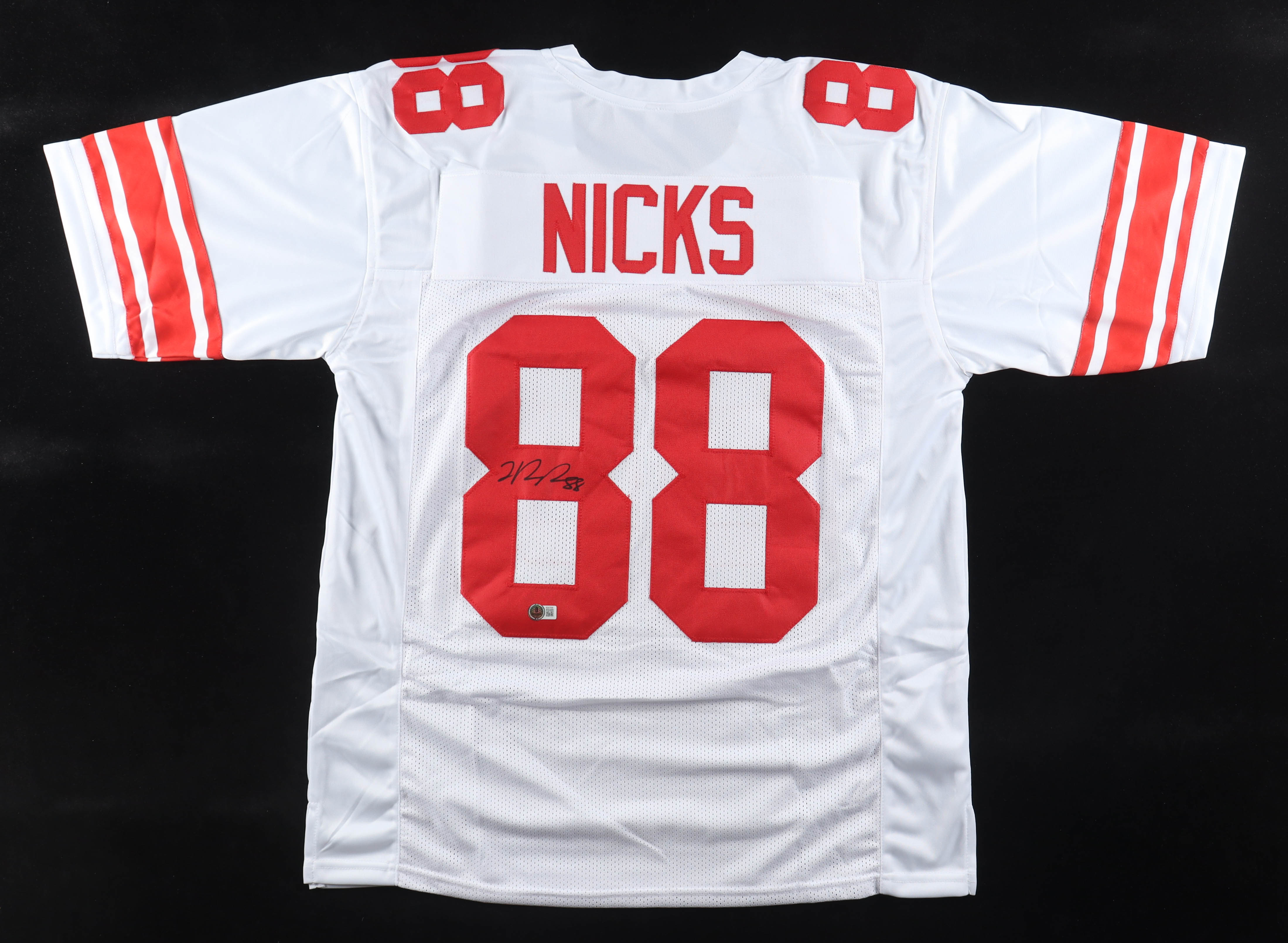 Custom jersey with everything sewn on, size XL. Hand-signed by Hakeem Nicks.