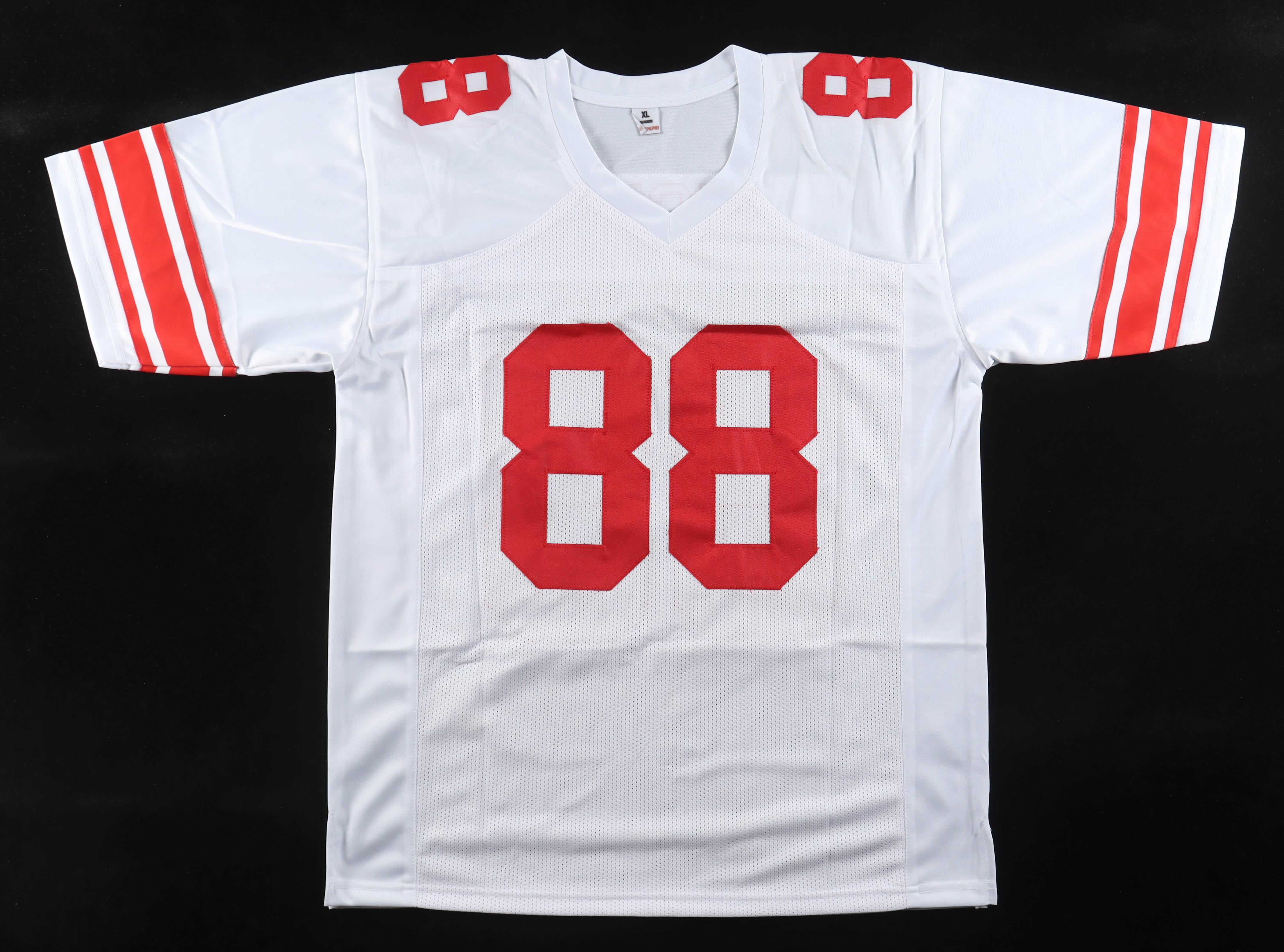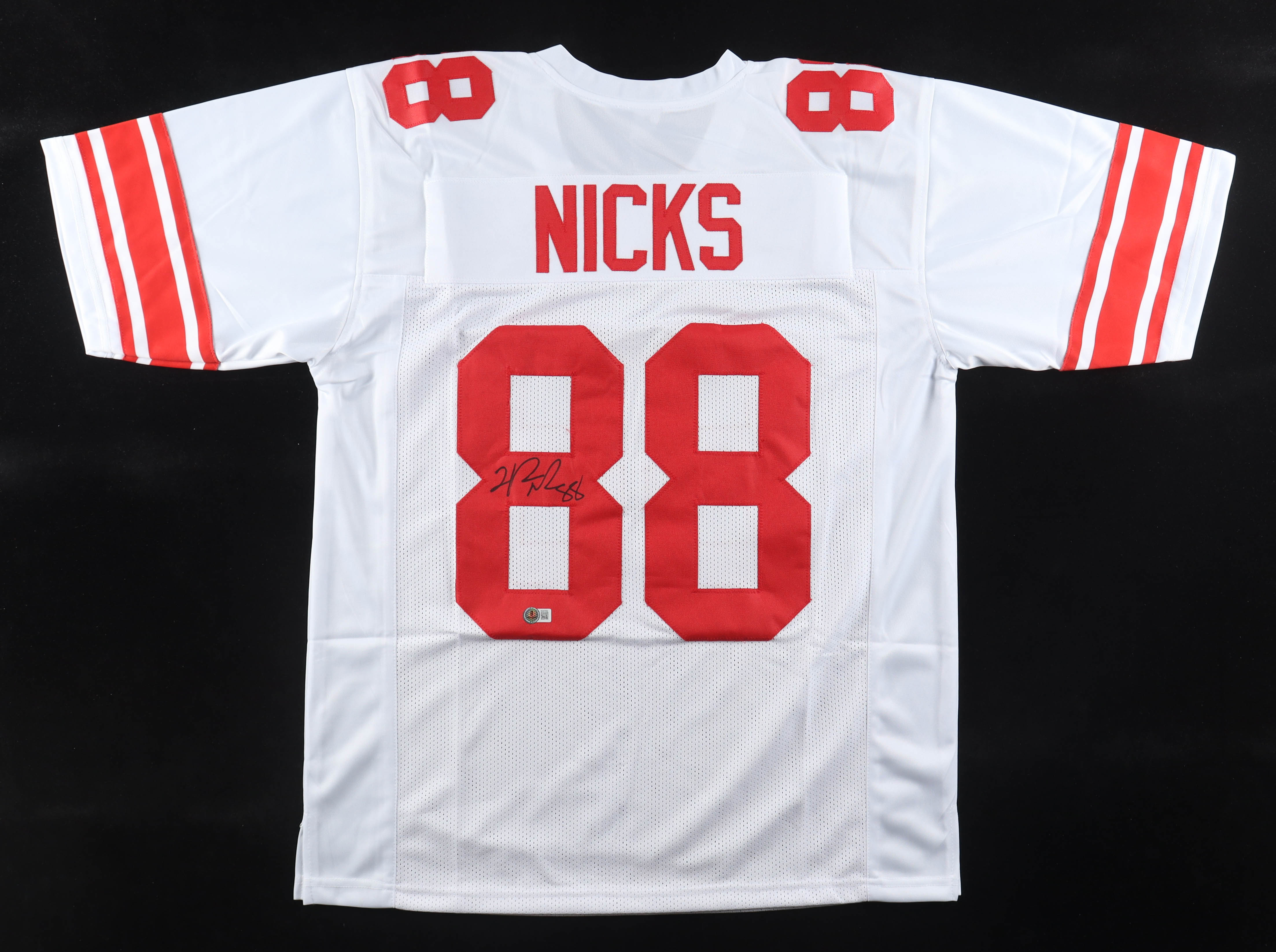 Custom jersey with everything sewn on, size XL. Hand-signed by Hakeem Nicks.