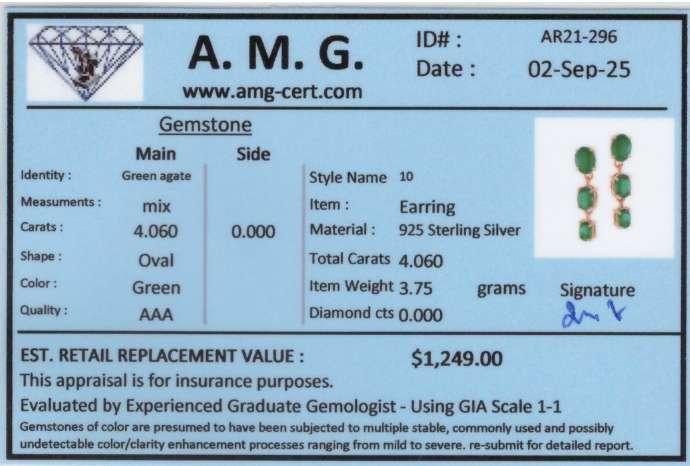 4.06 CTW Natural Green Agate 18K Gold Plated Designer Earrings | Estimated Value $1249 (AMG)