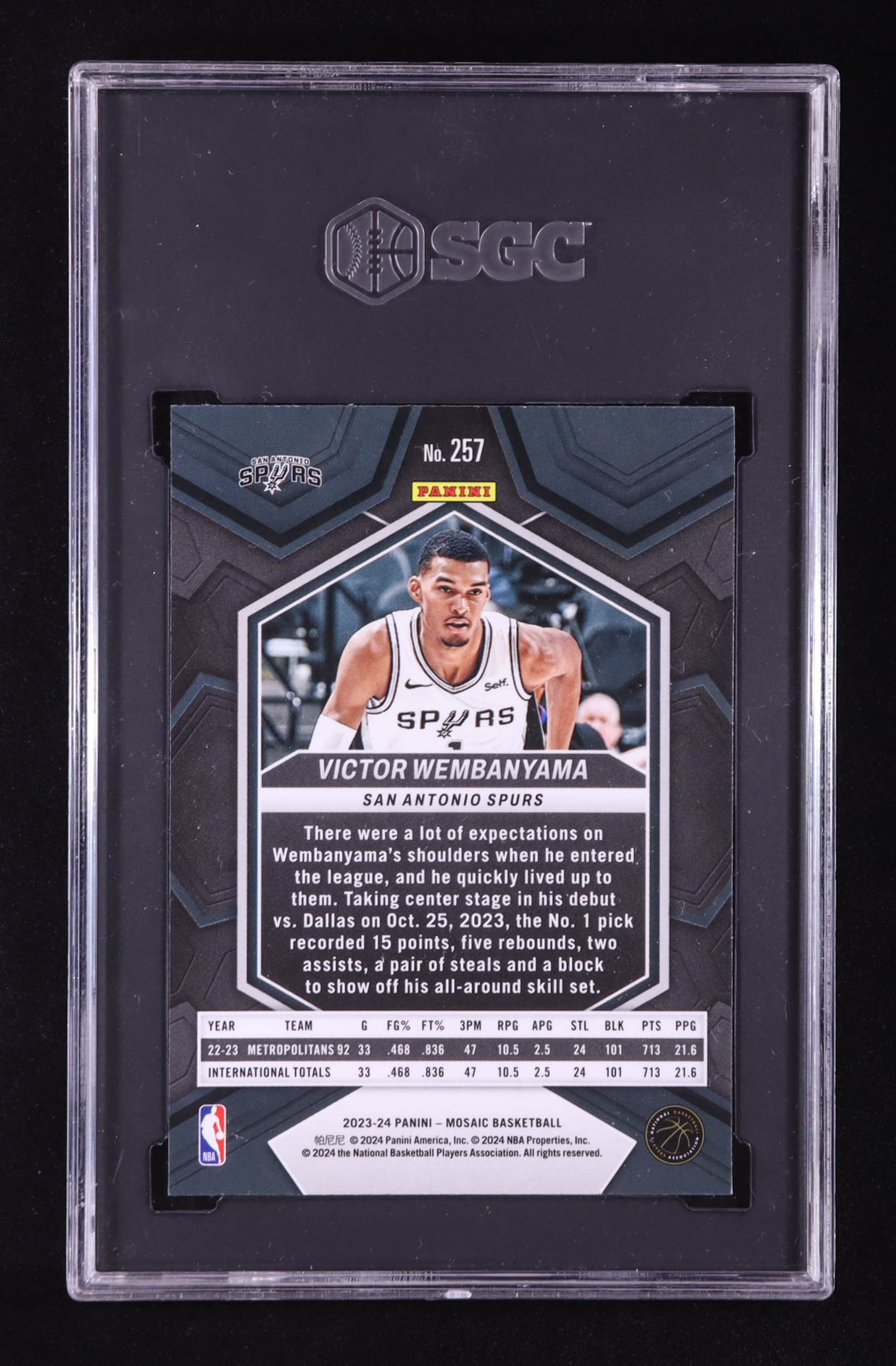 Victor Wembanyama 2023-24 Panini Mosaic NBA Debut #257 RC (SGC 9.5)