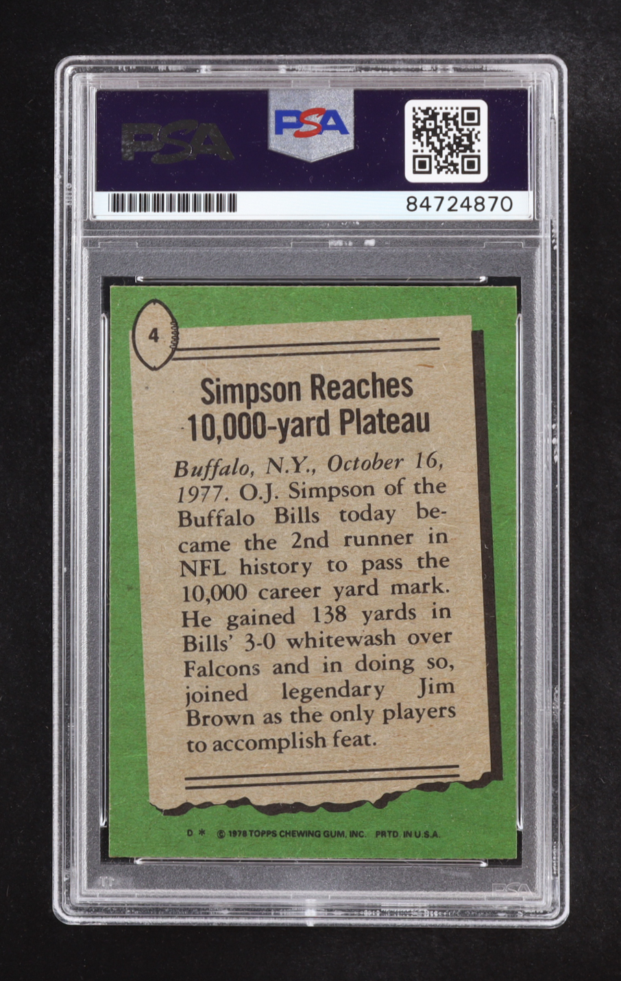 O.J. Simpson Signed 1978 Topps #4 HL (PSA | Auto Grade PSA 10)
