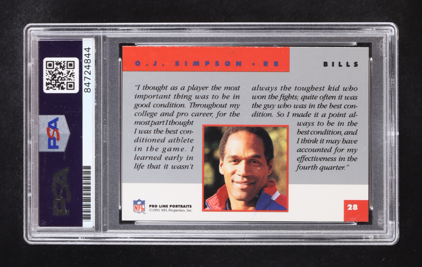 O.J.Simpson Signed 1991 Pro Line Portraits RET #28 (PSA | Auto Grade PSA 10)