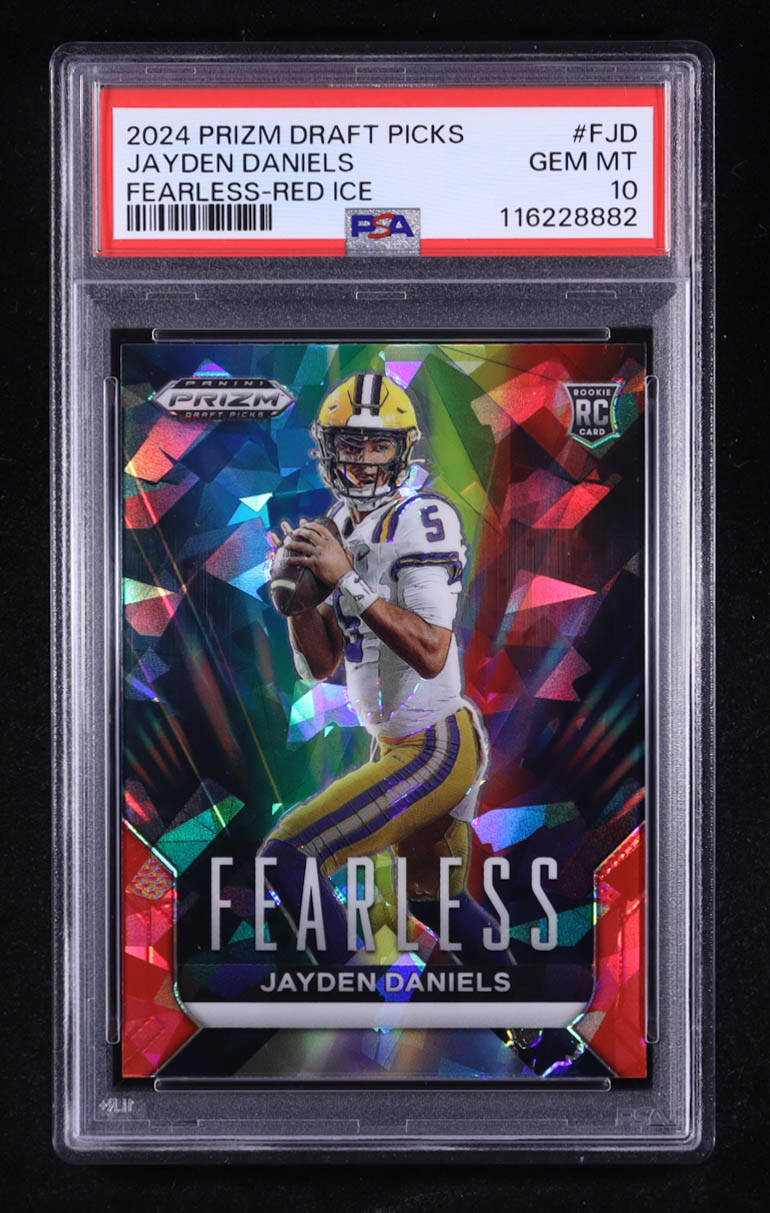 Jayden Daniels 2024 Panini Prizm Draft Picks Fearless Red Ice #5 RC (PSA 10)