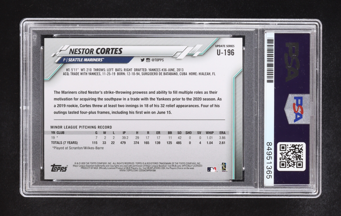 Nestor Cortes Signed 2020 Topps Update #U196 RC (PSA | Auto Grade PSA Authentic)