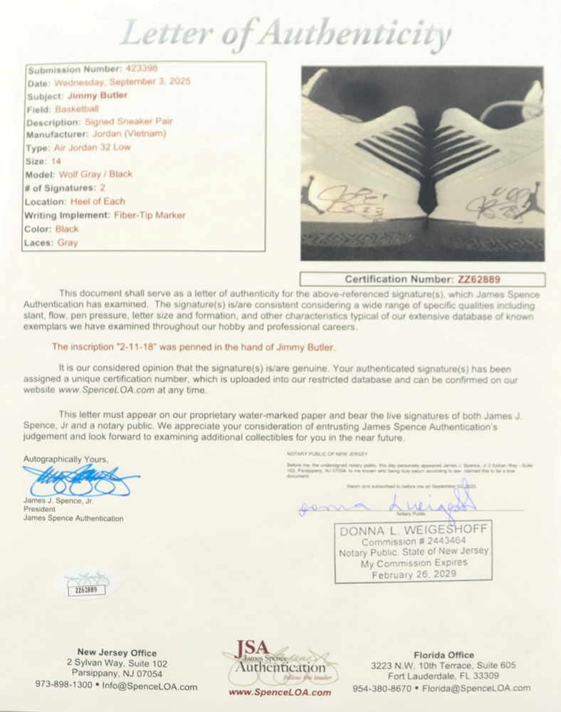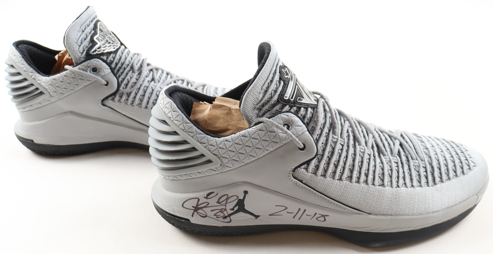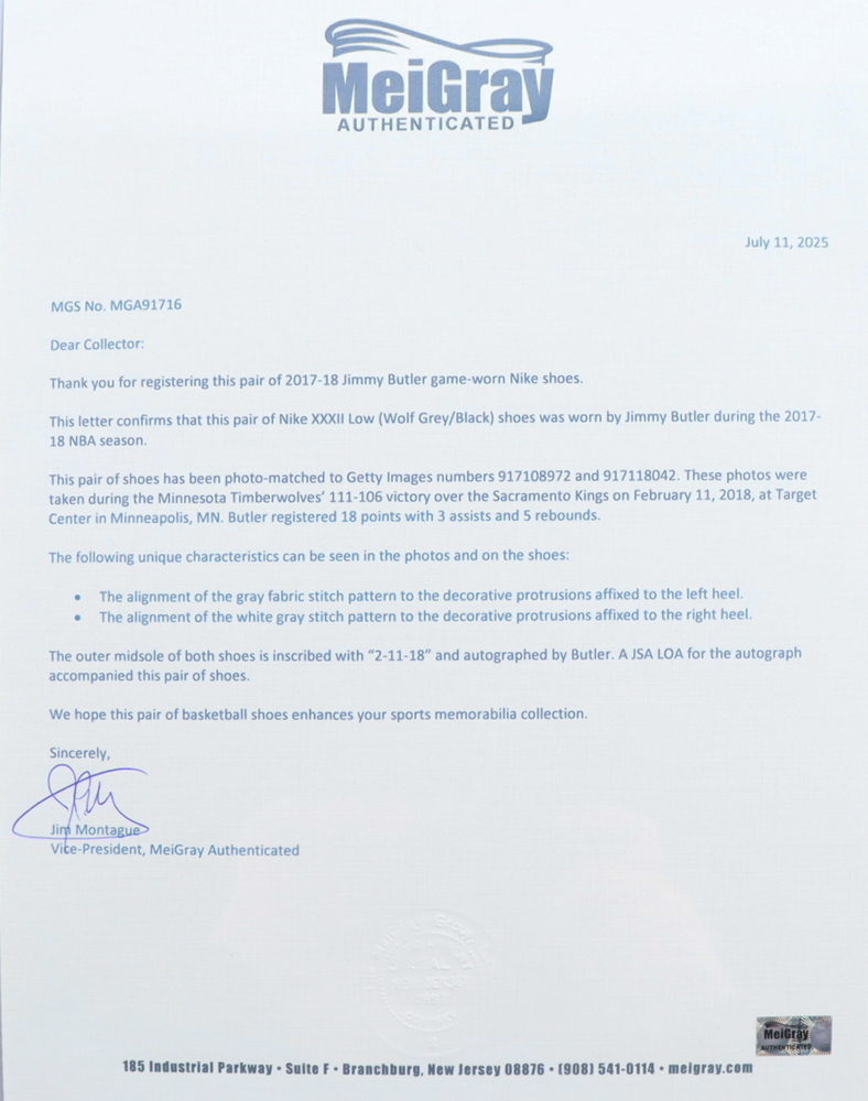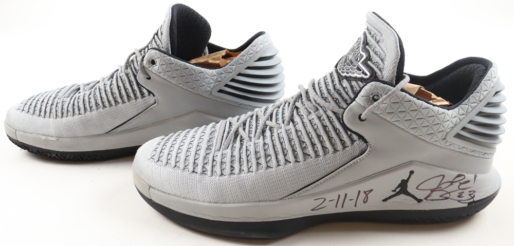 Jimmy Butler Twice-Signed Game-Used Pair of Air Jordan Basketball Shoes Inscribed "2-11-18" (JSA & MeiGray)