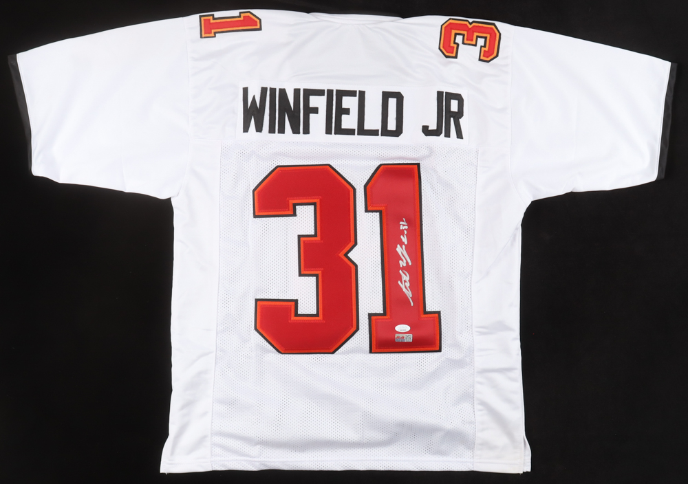 Custom jersey. Everything is sewn on, size XL. Hand-signed by Antoine Winfield Jr.