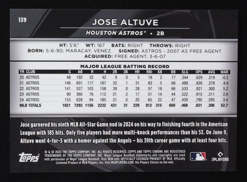 Jose Altuve 2025 Topps Chrome Black Green Wave Refractors #139 #33/99