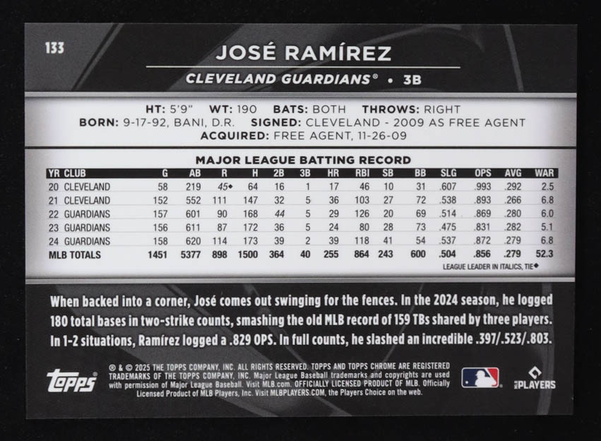 Jose Ramirez 2025 Topps Chrome Black Gold Refractors #133 #21/50