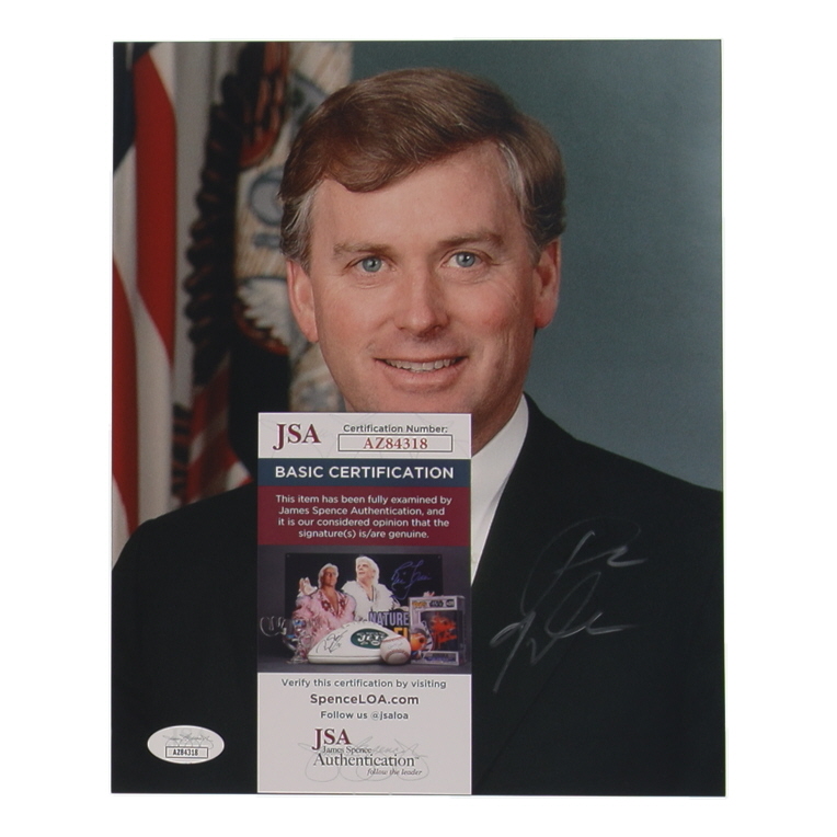 Photo measures 8" x 10" in size and has been hand-signed by Dan Quayle.