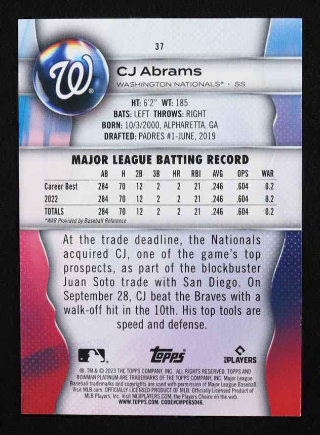 CJ Abrams 2023 Bowman Platinum Orange #37 #07/25
