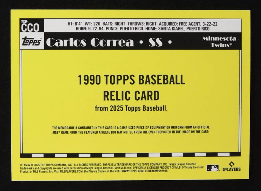 Carlos Correa 2025 Topps '90 Topps Relics #T90RCCO