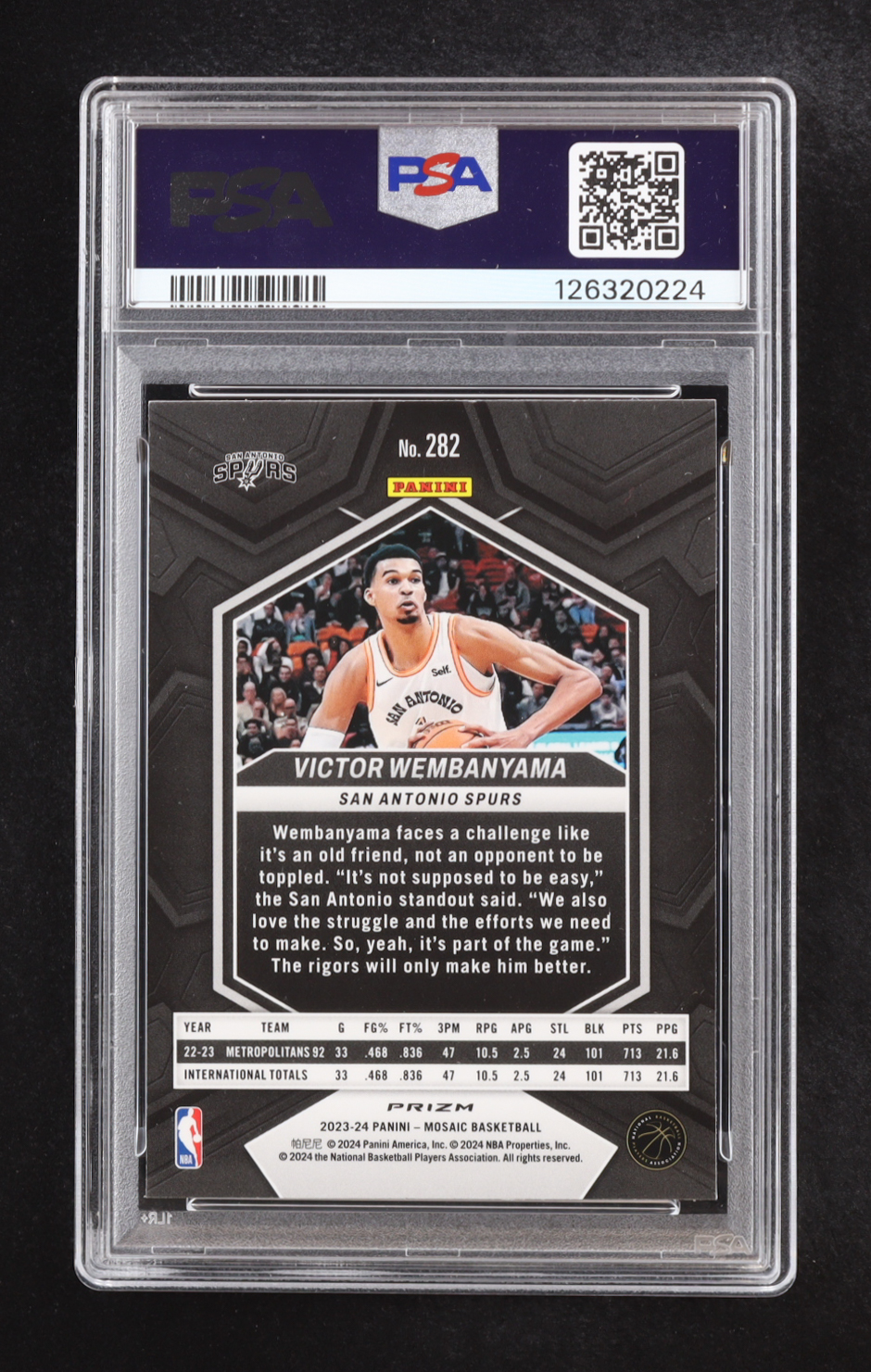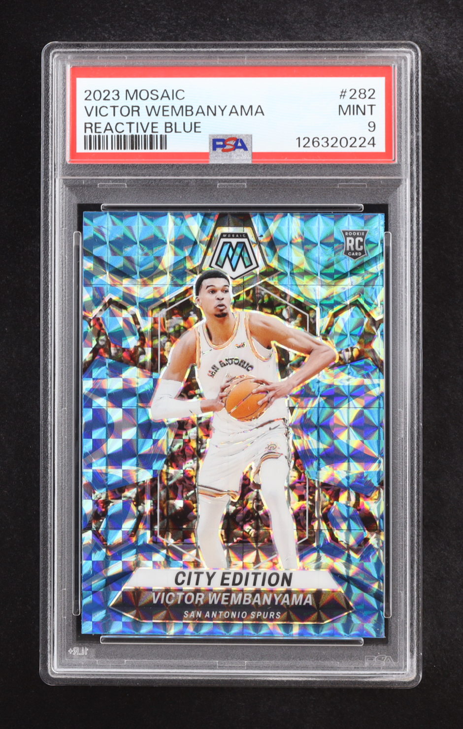 Victor Wembanyama 2023-24 Panini Mosaic Mosaic Reactive Blue #282 RC / City Edition (PSA 9)