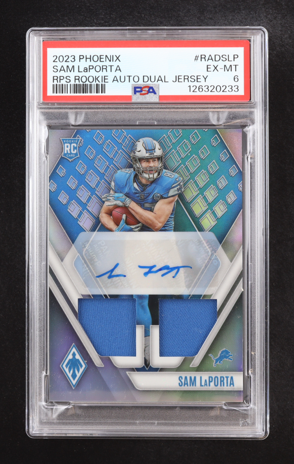 Sam LaPorta 2023 Panini Phoenix Rookie Premiere Dual Jersey Autographs #12 RC #190/199 (PSA 6)